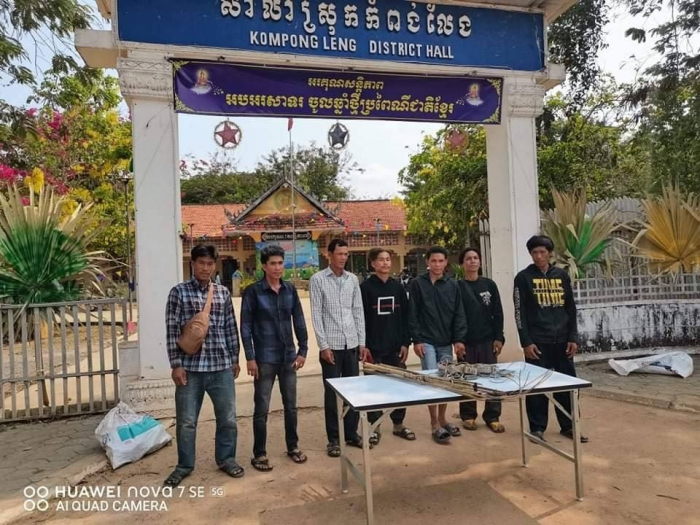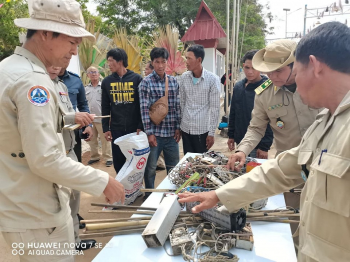 មន្ត្រីជលផលស្រុកកំពង់លែងខេត្តកំពង់ឆ្នាំងបានឃាត់ខ្លួនជនល្មើស៧នាក់ មកអប់រំណែនាំ និងរឹបអូសឧបករណ៍ឆក់ត្រីចំនួន៧គ្រឿង ដោយសារពួកគេលួចចូលឆក់ត្រី ក្នុងដែននេសាទ ស្ថិតនៅចំណុចអតីតឡូត៍លេខ៧Aដែលជាតំបន់អភិរក្សត្រីមេពូជ។