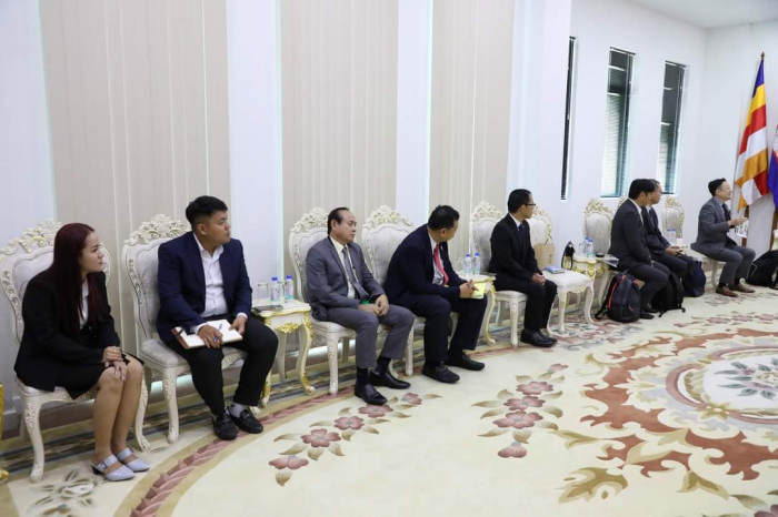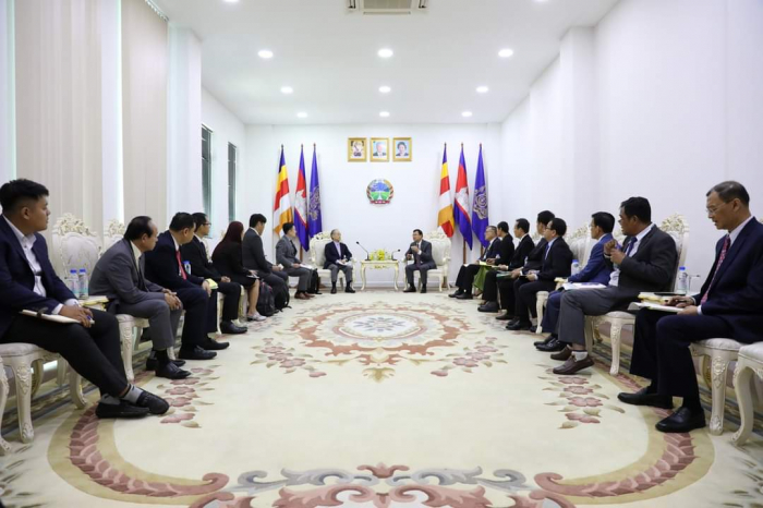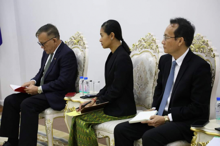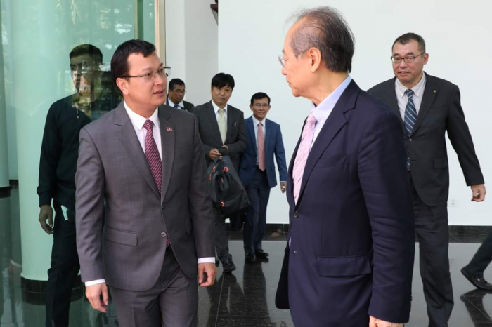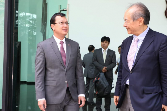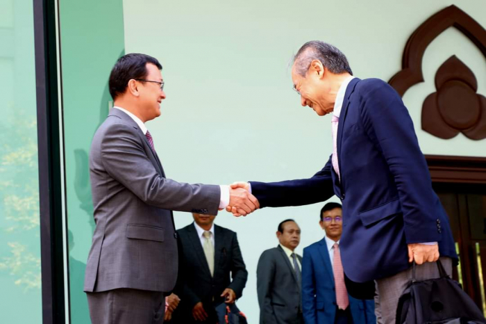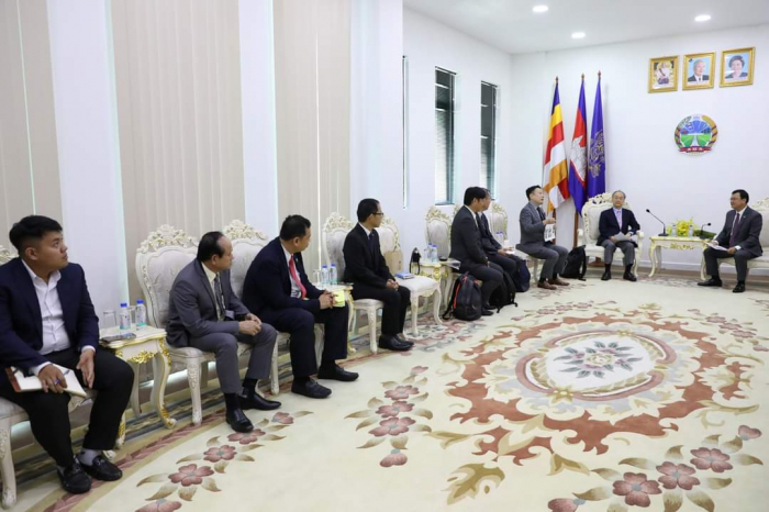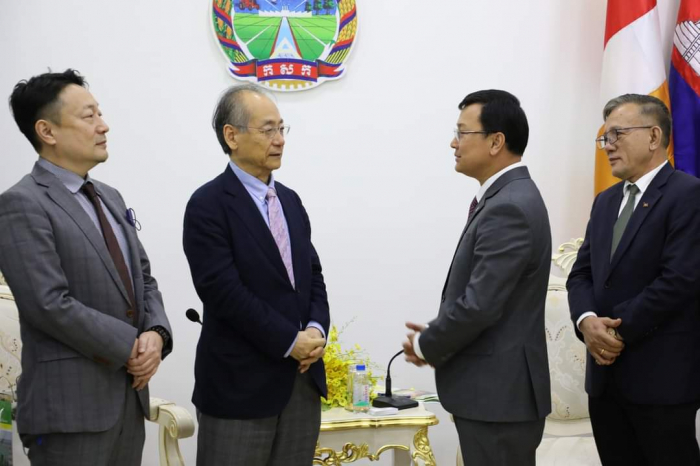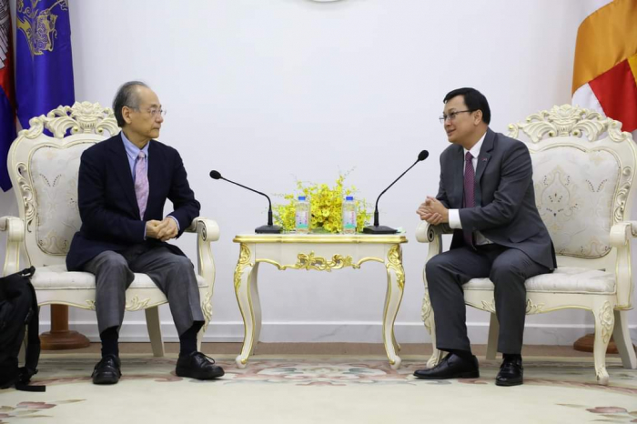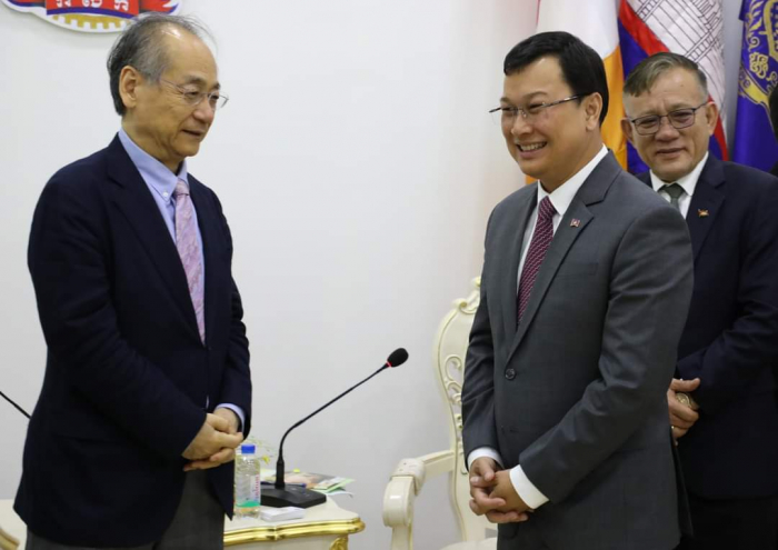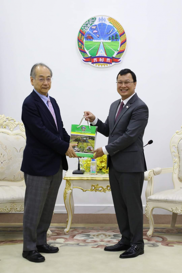 ឯកឧត្តម ឌិត ទីណា រដ្ឋមន្ត្រី ក្រសួងកសិកម្ម រុក្ខាប្រមាញ់ និងនេសាទ ទទួលជួបពិភាក្សាការងារជាមួយឯកឧត្តម Takahashi FUMIAKI ប្រធានសមាគមជប៉ុន-កម្ពុជា =========================== នាព្រឹកថ្ងៃទី០៦ ខែកុម្ភៈ ឆ្នាំ២០២៣ ឯកឧត្តម ឌិត ទីណា រដ្ឋមន្ត្រី ក្រសួងកសិកម្ម រុក្ខាប្រមាញ់ និងនេសាទ និងថ្នាក់ដឹកនាំ ជាមួយឯកឧត្តម TAKAHASHI FUMIAKI ប្រធានសមាគមជប៉ុន-កម្ពុជា លោក KATO KAZUNORI ប្រធានក្រុមហ៊ុន IL Brille និងជាអនុប្រធានសមាគមជប៉ុន-កម្ពុជា ម្ចាស់គម្រោង «សរសៃសូត្រមាសខ្មែរ» នៅទីស្តីការក្រសួងកសិកម្ម រុក្ខាប្រមាញ់ និងនេសាទ។ ក្នុងជំនួបនេះពិភាក្សាការងារនេះ ឯកឧត្តមរដ្ឋមន្ត្រី បានសម្តែងនូវការស្វាគមន៍ និងបានបង្ហាញពីការគាំទ្រចំពោះគម្រោង «សរសៃសូត្រមាសខ្មែរ» និងកសិដ្ឋានចិញ្ចឹមត្រី ខេមបូឌា ហ្វ្រេស ហ្វាម ជាពិសេសនឹងជំរុញឱ្យមានការផ្សព្វផ្សាយបន្ថែមទៅដល់កសិករកម្ពុជាឱ្យនៅតែបន្តដាំដុះស្លឹកមន និងចិញ្ចឹមដង្កូវនាងកាន់តែផុសផុលឡើងវិញ ដើម្បីបំពេញតម្រូវការទីផ្សារនាំចេញ។ ទន្ទឹមនឹងនេះដែរ ឯកឧត្ដមរដ្ឋមន្ត្រី ក៏បានគាំទ្រ និងត្រៀមចូលរួមសហការយ៉ាងពេញឆ្លើយតបនឹងការស្នើសុំវិញ្ញាបនបត្រសម្គាល់ផលិតផល ដើម្បីជួយឱ្យការងារនេះសម្រេចបានកាន់តែលឿនតាមដែលអាចធ្វើទៅបាន ហើយនេះក៏ជាការបង្ហាញឱ្យឃើញពីការគាំទ្រដល់ក្រុមហ៊ុនជប៉ុនដែលបានមកបណ្ដាក់ទុនវិនិយោគនៅក្នុងប្រទេសកម្ពុជា ជាពិសេសដើម្បីជួយដល់ប្រជាកសិករខ្មែរដែលប្រកបមុខរបរលើគម្រោងនេះ ឱ្យទទួលបានជីវភាពកាន់តែល្អប្រសើរ។ សូមជម្រាបផងដែរថា គោលបំណងនៃជំនួបពិភាក្សានេះ ដើម្បីពង្រឹងកិច្ចសហប្រតិបត្តិការ ផ្លាស់ប្តូរយោបល់ ពិភាក្សាអំពីវឌ្ឍនភាព និងស្វែងរកកាលានុវត្តភាពបន្ថែម ក្នុងការជំរុញបរិយាកាសធុរកិច្ចនៅកម្ពុជា ឱ្យកាន់តែមានប្រសិទ្ធភាពខ្ពស់។ ហើយដើម្បីអនុវត្តន៍គម្រោងនេះឱ្យទទួលបានជោគជ័យ ក្រុមហ៊ុនបានយកពូជដើមមន ដែលឆ្លងកាត់ការពិសោធន៍យ៉ាងត្រឹមត្រូវ ទៅផ្តល់ជូនកសិករសម្រាប់ដាំដុះសាកល្បង និងមានការផ្តល់ជាបច្ចេកទេសមួយចំនួនទៅកាន់កសិករ ដែលមានការចុះកិច្ចសន្យាត្រឹមត្រូវជាមួយក្រុមហ៊ុន ដើម្បីធ្វើយ៉ាងណាឱ្យការផលិតសំបុកដង្កូវនាងស្របទៅតាមស្តង់ដារប្រទេសជប៉ុន សម្បូរទៅដោយប្រូតេអុីនដែលជាតម្រូវការក្នុងការយកទៅធ្វើជាវត្ថុធាតុដើម នៃការផលិតគ្រឿសម្អាង និងហ្វូមលាងសម្អាតមុខ តាមស្តង់ដារប្រទេសជប៉ុន។ មួយវិញទៀត សម្រាប់កសិដ្ឋានចិញ្ចឹមត្រី ខេមបូឌា ហ្វ្រេស ហ្វាម បច្ចុប្បន្នបាននិងកំពុងចិញ្ចឹមត្រី ទីឡាព្យា ឬណាន់ហ្គុឃឹដៃ លើផ្ទៃដីចំនួន៤,៥ហិកតា ក្នុងខេត្តកណ្តាល ដើម្បីលក់នៅលើទីផ្សារ ដោយយកទៅកែច្នៃជាម្សៅរោយបាយ ប្រហិតត្រី ផ្អកត្រី ត្រីងៀត ត្រីបន្ទះជាដើម សម្រាប់លក់នៅក្នុងស្រុក និងគ្រ