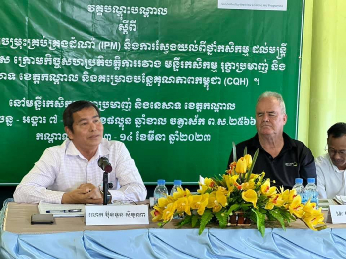 មន្ទីរកសិកម្ម រុក្ខាប្រមាញ់ និងនេសាទ ខេត្ដកណ្ដាល សហការជាមួយគម្រោងគុណភាពបន្លែ បានរៀបចំបើកវគ្គបណ្ដុះបណ្ដាល ពីវិធានការការពារដំណាំ (IPM) និងការស្វែងយល់អំពីថ្នាំកសិកម្ម ជូនដល់មន្ត្រីបច្ចេកទេសនៃមន្ទីរកសិកម្ម។