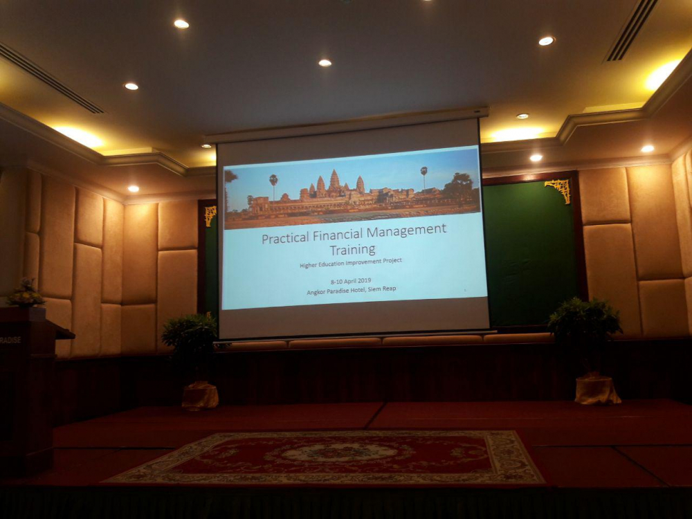 ខេត្តសៀមរាប៖ ចាប់ពីថ្ងៃចន្ទ ៤កើត ខែចេត្រ ឆ្នាំច សំរឹទ្ធិស័ក ព.ស.២៥៦២ ត្រូវនឹងថ្ងៃទី០៨ ខែមេសា ឆ្នាំ២០១៩ ដល់ថ្ងៃពុធ ៦កើត ខែចេត្រ ឆ្នាំច សំរឹទ្ធិស័ក ព.ស.២៥៦២ ត្រូវនឹងថ្ងៃទី១០ ខែមេសា ឆ្នាំ២០១៩ វេលាម៉ោង ៨:០០នាទីព្រឹក នៅសណ្ឋាគារអង្គរប៉ារ៉ាឌី បានបើកសិក្ខាសាលាស្តីពី “ការគ្រប់គ្រងហិរញ្ញវត្ថុគម្រោងកែលម្អការអប់រំឧត្តមសិក្សា” ដើម្បីពង្រឹងសមត្ថភាពក្នុងការគ្រប់គ្រងហិរញ្ញវត្ថុគម្រោង និងធានាឲ្យការអនុវត្ត ប្រកបដោយគណនេយ្យភាព និងសង្គតិភាព។ នាយកដ្ឋានសវនកម្មផ្ទៃក្នុង នៃក្រសួងកសិកម្ម រុក្ខាប្រមាញ់ និងនេសាទ បានចាត់បញ្ជូនមន្ត្រីសវនកម្មផ្ទៃក្នុង ចំនួន០៣រូប ដើម្បីចូលរួមសិក្ខាសាលាខាងលើ ជាមួយនាយកដ្ឋានសវនកម្មផ្ទៃក្នុង នៃក្រសួងអប់រំ យុវជន និងកីឡា ព្រមទាំងសាកលវិទ្យាល័យចំនួន ៥ ដែលបានអនុវត្តគម្រោងកែលម្អការអប់រំឧត្តមសិក្សា (HEIP) ដោយប្រើប្រាស់ឥណទានធនាគារពិភពលោក មានរយៈពេល ៦ ឆ្នាំគឺចាប់ពី ខែកញ្ញា ឆ្នាំ២០១៨ ។