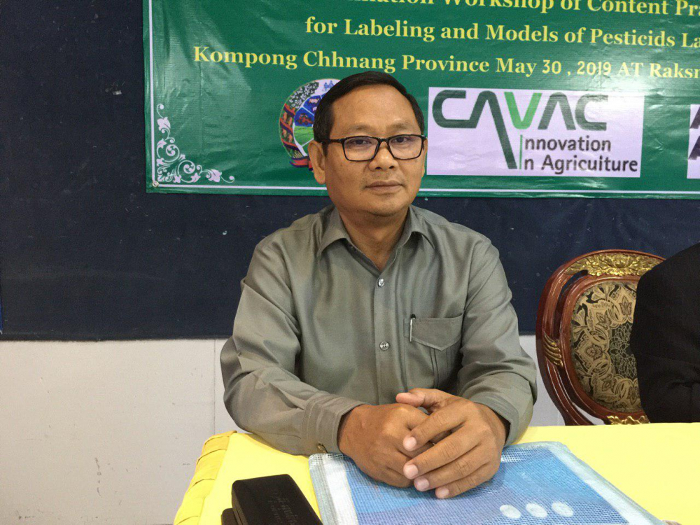 នៅព្រឹកថ្ងៃព្រហស្បតិ៍ ១២រោច ខែពិសាខ ឆ្នាំកុរ ឯកស័ក ព.ស ២៥៦៣ ត្រូវនឹងថ្ងៃទី៣០ ខែឧសភា ឆ្នាំ២០១៩នាយកដ្ឋាននីតិកម្មកសិកម្ម បានរៀបចំសិក្ខាសាលាផ្សព្វផ្សាយខ្លឹមសារប្រកាសស្តីពីគោលការណ៍ណែនាំសម្រាប់ស្លាកសញ្ញាព័ត៌មាន និងគំរូស្លាកសញ្ញាព័ត៌មាននៃថ្នាំកសិកម្ម ក្រោមអធិបតីភាពឯកឧត្តម ឡោ រស្មី អនុរដ្ឋលេខាធិការក្រសួងកសិកម្ម រុក្ខាប្រមាញ់និងនេសាទតំណាងឯកឧត្តម វេង សាខុន រដ្ឋមន្ត្រីក្រសួងកសិកម្ម រុក្ខាប្រមាញ់ និងនេសាទ លោក ភុំ រ៉ា ប្រធាននាយកដ្ឋាននីតិកម្មកសិកម្ម លោកស្រីអនុប្រធានមន្ទីកសិកម្ម រុក្ខាប្រមាញ់និងនេសាទខេត្ត នៅខេត្តកំពង់ឆ្នាំង ដែលឧបត្ថមគាំទ្រដោយអង្គការ CAVAC ។