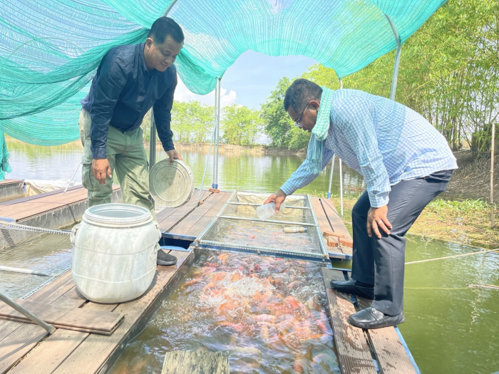 នាឱកាសនេះ ឯកឧត្តមរដ្ឋលេខាធិការ និងមន្ត្រីជំនាញ បានណែនាំអំពីបច្ចេកទេស ការបង្កាត់ភ្ញាស់កូនត្រីពូជ តាមលក្ខណៈបច្ចេកទេស និងបង្ហាញអំពីខ្សែច្រវាក់ផលិតកម្ម លើដំណើរការកាត់បន្ថយថ្លៃដើមផលិត និងចំណាយដើមទុនតិច ព្រមទាំងគូសបញ្ជាក់អំពីគោលនយោបាយរបស់ក្រសួងកសិកម្ម រុក្ខាប្រមាញ់ និងនេសាទ ក្នុងការគាំទ្រ និងការអភិវឌ្ឍវារីវប្បកម្មកម្ពុជាជូនដល់ម្ចាស់កសិដ្ឋាន និងអាជ្ញាធរមូលដ្ឋានពាក់ព័ន្ធ។