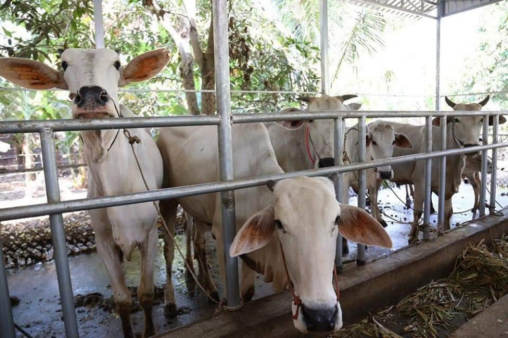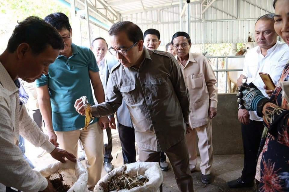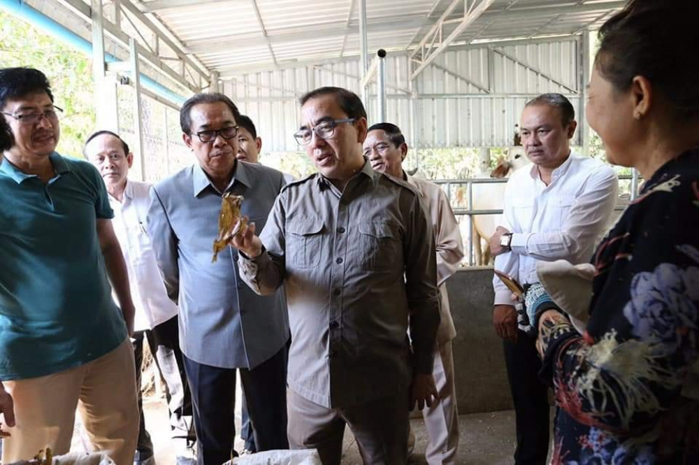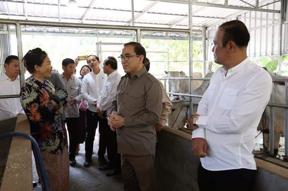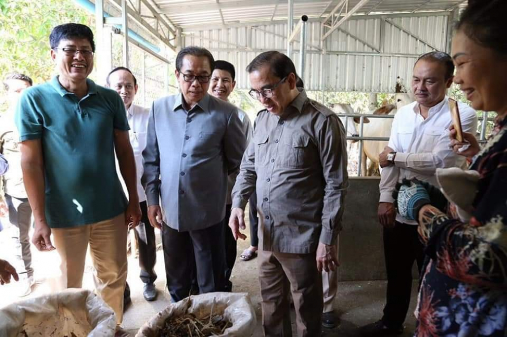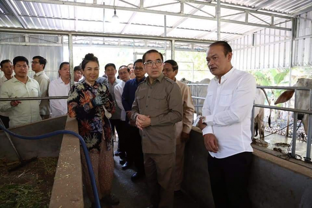 ឯកឧត្តមរដ្ឋមន្ត្រី និងសហការីបានអញ្ជើញមកពិនិត្យការចិញ្ចឹមគោជាលក្ខណគ្រួសាររបស់បងប្រុស ទួន សំអន