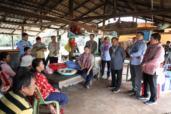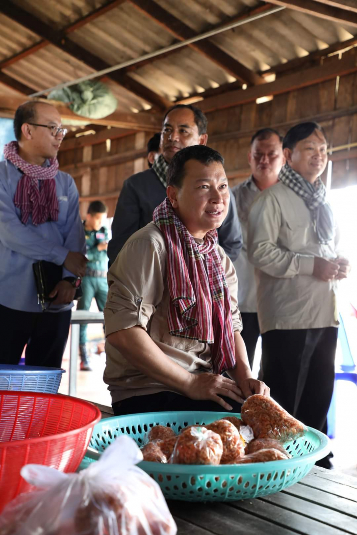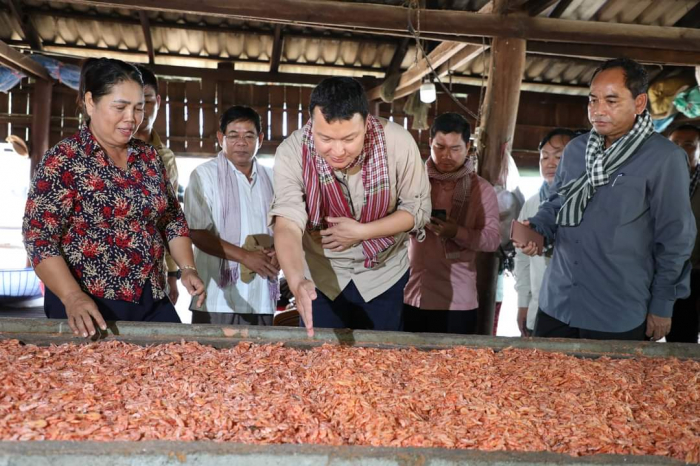 ឯកឧត្តម ឌិត ទីណា រដ្ឋមន្ត្រី ក្រសួងកសិកម្ម រុក្ខាប្រមាញ់ និងនេសាទ បានចុះពិនិត្យការកែច្នៃបង្គាក្រៀមរបស់សហគមន៍នេសាទ នៅតំបន់ព្រៃការពារកោងកាង ឃុំអូរឧកញ៉ាហេង ស្រុកព្រៃនប់ ខេត្តព្រះសីហនុ