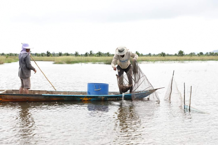 កម្មវិធីទី២៖ថ្ងៃទី២៤ ខែវិច្ឆិកា ឆ្នាំ២០២២ ឯកឧត្តម ឌិត ទីណា រដ្ឋមន្ត្រី ក្រសួងកសិកម្ម រុក្ខាប្រមាញ់ និងនេសាទ បានចុះពិនិត្យការកែច្នៃបង្គាក្រៀមរបស់សហគមន៍នេសាទ នៅតំបន់ព្រៃការពារកោងកាង ឃុំអូរឧកញ៉ាហេង ស្រុកព្រៃនប់ ខេត្តព្រះសីហនុ -------------------------------------------------------------------------- នាព្រឹកថ្ងៃព្រហស្បតិ៍ ថ្ងៃទី២៤ ខែវិច្ឆិកា ឆ្នាំ២០២២ នេះដែរ ឯកឧត្តម ឌិត ទីណា រដ្ឋមន្ត្រីក្រសួងកសិកម្ម រុក្ខាប្រមាញ់ និងនេសាទ និងសហការីអមដំណើរបានបន្តដំណើរទៅ ពិនិត្យការកែច្នៃបង្គាក្រៀម របស់ប្រជានេសាទនៅក្នុងសហគមន៍តំបន់ព្រៃការពារកោងកាង ឃុំអូរឧកញ៉ាហេង ស្រុកព្រៃនប់ ខេត្តព្រះសីហនុ។ នាក្នុងឱកាសចុះពិនិត្យនេះ ឯកឧត្តមរដ្ឋមន្ត្រី បានជួបសំណេះសំណាលជាមួយក្រុមប្រជានេសាទកែច្នៃបង្គាក្រៀមក្នុងសហគមន៍ ហើយឯកឧត្តមក៏បានសម្តែងនូវការគាំទ្រ និងលើកទឹកចិត្ដដល់ប្រជានេសាទទាំងអស់ដែលធ្វើការនៅក្នុងសហគមន៍នេសាទឱ្យមាននិរន្តរភាព និងចូលរួមថែរក្សាបរិស្ថានឱ្យបានល្អ។ ជាមួយគ្នានេះដែរ ឯកឧត្តមក៏បានសូមឱ្យប្រជានេសាទទាំងអស់ចូលរួមក្នុងការចិញ្ចឹម និងអភិរក្សមេពូជដើម្បីទប់ស្កាត់នូវការថយចុះធនធានជលផល ហើយមន្ត្រីជំនាញធ្វើយ៉ាងណាជួយមើលក្នុងការថែរក្សាជម្រកបង្គា ក្តាម ជាពិសេសប្រសិនបើការប្រមូលទិញឃើញមានក្តាមញីពង គឺត្រូវលែងត្រឡប់ទៅវិញ៕