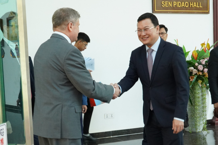 នៅរសៀលថ្ងៃទី០៧ ខែមេសា ឆ្នាំ២០២៣ ឯកឧត្តម ឌិត ទីណា រដ្ឋមន្ត្រីក្រសួងកសិកម្ម រុក្ខាប្រមាញ់ និងនេសាទ និងថ្នាក់ដឹកនាំ បានចូលរួមកិច្ចប្រជុំពិភាក្សាជាមួយឯកអគ្គរដ្ឋទូតសហព័ន្ធរុស្សីប្រចាំនៅព្រះរាជាណាចក្រកម្ពុជា នៅទីស្តីការក្រសួងកសិកម្ម រុក្ខាប្រមាញ់ និងនេសាទ។
