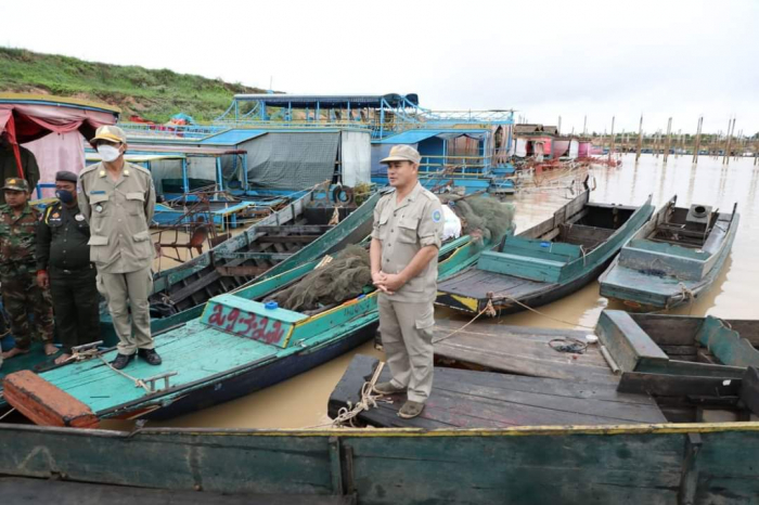 កម្មវិធីទី៤៖ តាមផ្លូវមកកាន់ទីរួមខេត្តសៀមរាប ឯកឧត្តមរដ្ឋមន្ត្រី និងសហការីបានអញ្ជើញឈាងចូលពិនិត្យឧបករណ៍ដែលរឹបអូសបានពីបទល្មើសនៅសង្កាត់រដ្ឋបាលជលផលភ្នំក្រោម។ យោងតាមរបាយ ការណ៍របស់ខណ្ឌរដ្ឋបាលជលផលសៀមរាប និងមន្ទីរកសិកម្ម រុក្ខាប្រមាញ់ និងនេសាទខេត្តសៀមរាប បានឲ្យដឹងថា ៖ - សមត្ថកិច្ចខណ្ឌរដ្ឋបាលជលផលចេញអន្តរាគមន៍ចុះទប់ស្កាត់ និងបង្ក្រាបបទល្មើសជលផល នៅចំណុចភូមិទី៧ សង្កាត់ចុងឃ្នៀស បានដកហូតឃាត់ទុកវត្ថុតាងបទល្មើស (ជនសង្ស័យបានរត់គេចខ្លួនបាត់) មានឧបករណ៍អួនអូសទឹកសាបចំនួន០២ វង់។ - គិតចាប់ពីថ្ងៃទី២ ខែមីនា ដល់ថ្ងៃទី១ ខែមេសា ឆ្នាំ២០២២ បានបង្ក្រាបបទល្មើសឧបករណ៍អួនអូសទឹកសាប ១៧វង់ ម៉ាញ់៣វង់ អួនហ៊ុម ៤វង់ កាណូត ៤៦គ្រឿង ម៉ាស៊ីន ១៤ គ្រឿង បញ្ជូនសំណុំរឿងទៅតុលាការ ១១ករណី និងចេញដីកាកោះ១១នាក់។ ឯកឧត្តមរដ្ឋមន្ត្រីបានណែនាំឲ្យខណ្ឌរដ្ឋបាលជលផល និងមន្ទីរកសិកម្ម រុក្ខាប្រមាញ់ និងនេសាទ កសាងសំណុំរឿងទាំងជនល្មើស និងវត្ថុតាងដែលរឹបអូសបាន។ ឧបករណ៍ និងសម្ភារមួយចំនួន គួរយកប្រើប្រាស់ជាប្រយោជន៍ដូចជាស្បៃមុង យកទៅធ្វើទ្រុងចិញ្ចឹមមាន់ និងជារនាំងបាំងសួនបន្លែ ក្រោយពីតុលាការបានជម្រះក្តីរួចរាល់។ ដោយឡែក ទូកម៉ាស៊ីន ឬកាណូត គួរទុកប្រើប្រាស់បម្រើឲ្យការងារជលផល។ លោក ទៀ គឹមសុទ្ធ ប្រធានមន្ទីរកសិកម្ម រុក្ខាប្រមាញ់ និងនេសាទ ថានឹងសហការជាមួយខណ្ឌរដ្ឋបាលជលផលធ្វើការផ្តល់ជាគ្រឿងឧបភោគបរិភោគបន្ថែម ដូចជា សាច់សត្វ ត្រីងៀត បន្លែ និងអង្ករជូនដល់ក្រុមអន្តរាគមន៍ថ្នាក់ជាតិទាំងពីរទីតាំង។