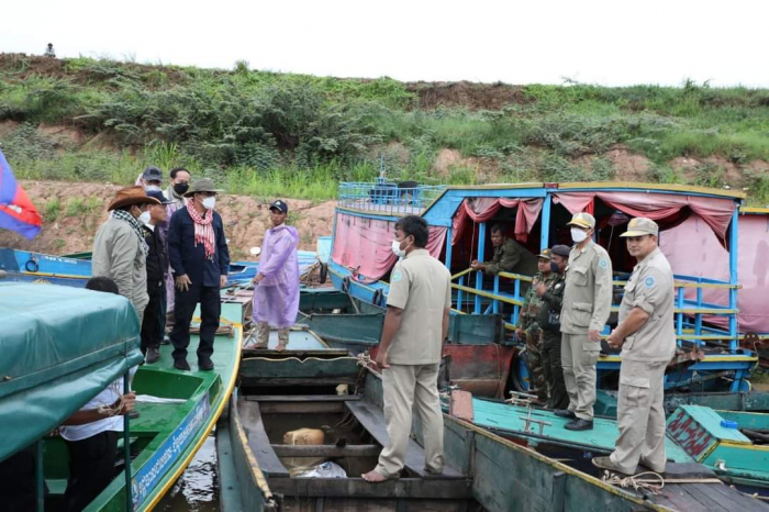 ឯកឧត្តមរដ្ឋមន្ត្រី វេង សាខុន និងសហការីបានអញ្ជើញចូលពិនិត្យឧបករណ៍ដែលរឹបអូសបានពីបទល្មើសនៅសង្កាត់រដ្ឋបាលជលផលភ្នំក្រោម
