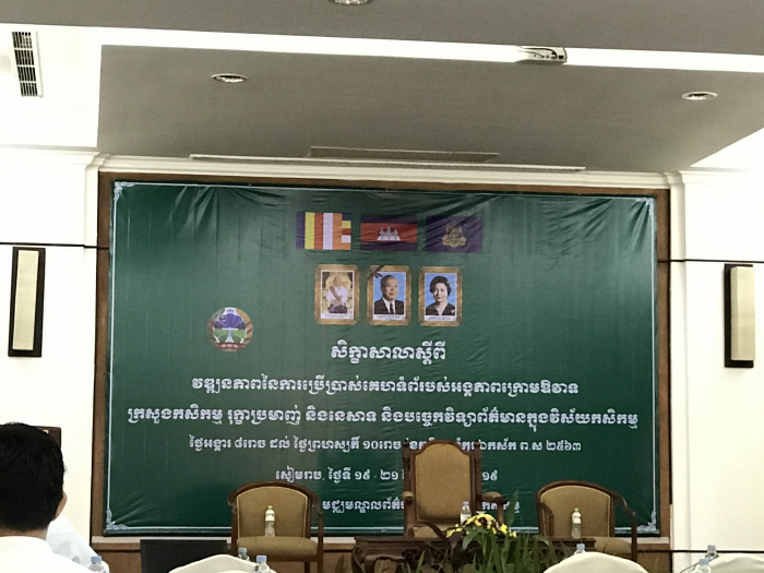សៀមរាប៖ នាព្រឹកថ្ងៃអង្គារ ៨រោច ខែកត្តិក ឆ្នាំកុរ ឯកស័ក ព.ស.២៥៦៣ ត្រូវនឹងថ្ងៃទី១៩ ខែវិច្ឆិកា ឆ្នាំ២០១៩ លោក ជា ចាន់ធឿន ប្រធានការិយាល័យតម្កល់ឯកសារនៃនាយកដ្ឋានកិច្ចការ រដ្ឋបាល តំណាងលោក ជា ច័ន្ទវាសនា ប្រធាននាយកដ្ឋានកិច្ចការរដ្ឋបាល បានចូលរួមសិក្ខាសាលាស្តីពីវឌ្ឍនភាពនៃការប្រើប្រាស់ និងគ្រប់គ្រងគេហទំព័ររបស់អង្គភាពក្រោមឱវាទក្រសួងកសិកម្ម រុក្ខាប្រមាញ់ និងនេសាទ របស់មជ្ឍមណ្ឌលព័ត៌មាន និងឯកសារកសិកម្ម ដោយមានការចូលរួមពីតំណាងបណ្តាអង្គភាពក្រោមឱវាទនានានៃក្រសួងកសិកម្ម រុក្ខាប្រមាញ់ និងនេសាទ ប្រមាណជិត៥០នាក់ នៅសណ្ឋាគារខេមរាអង្គរ