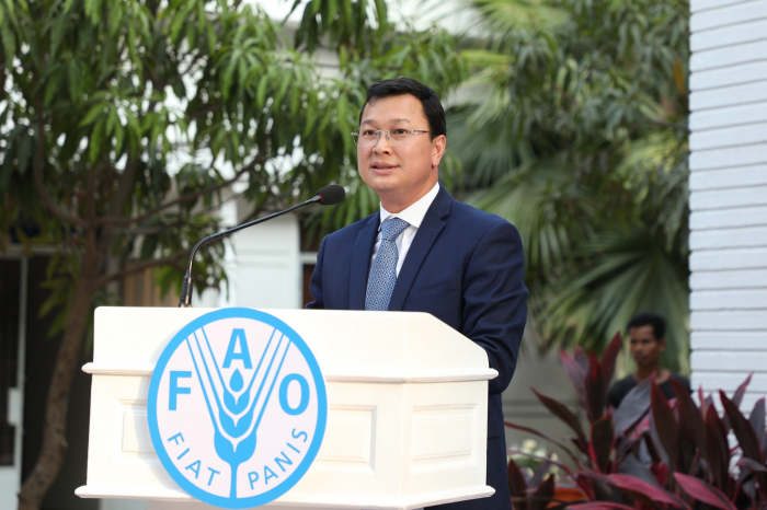 ក្នុងពិធីនេះ ឯកឧត្តមរដ្ឋមន្ត្រី បានថ្លែងអំណរគុណយ៉ាងជ្រាលជ្រៅចំពោះ FAO ដែលបានចូលរួមចំណែក និងគាំទ្រការអភិវឌ្ឍដល់ក្រសួងកសិកម្មក៏ដូចជាប្រទេសកម្ពុជា។ នាឱកាសនេះដែរ ឯកឧត្តម ក៏បានរំលឹកអំពីប្រវត្តិនៃការផ្តើមទំនាក់ទំនង និងសហប្រតិបត្តិការល្អរវាងកម្ពុជា និងអង្គការ FAO រហូតដល់ពេលបច្ចុប្បន្នក្នុងការចូលរួមអភិវឌ្ឍសេដ្ឋកិច្ចសង្គមកម្ពុជា ដោយក្នុងនោះជំនួយបច្ចេកទេសបានគ្របដណ្តប់ធំធេងដូចជាផលិតភាពនិងពិពិធកម្មកសិកម្ម ធារាសាស្ត្រ សុខភាពនិងផលិតកម្មសត្វ ការគ្រប់គ្រងធនធានជលផលនិងព្រៃឈើ សន្តិសុខនិងសុវត្ថិភាពស្បៀង និងការអភិវឌ្ឍកសិ-ឧស្សាហកម្មខ្នាតតូច ព្រមទាំងសហប្រតិបត្តិការជាច្រើនទៀត។