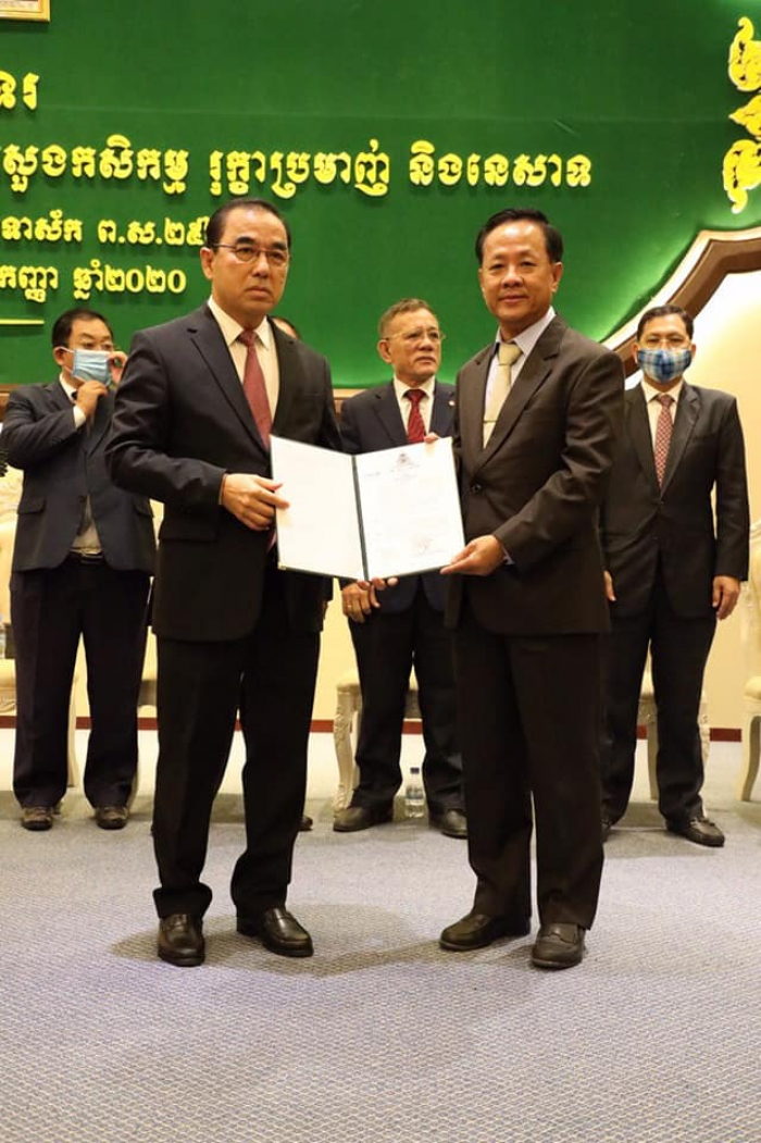 ឯកឧត្តម វេង សាខុន រដ្ឋមន្ត្រីក្រសួងកសិកម្ម រុក្ខាប្រមាញ់ និងនេសាទ បានអញ្ជើញជាអធិបតីភាពក្នុងពិធីប្រកាសចូលកាន់តំណែងរបស់មន្ត្រីរាជការ