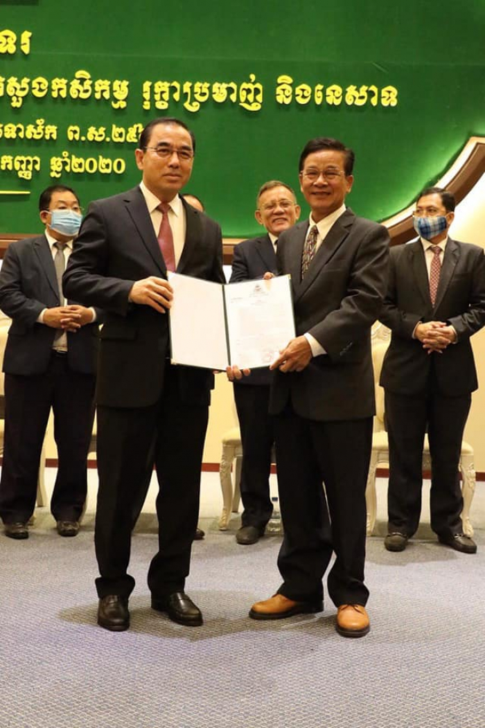 ឯកឧត្តមអគ្គលេខាធិការ សរ ចិត្រា អញ្ជើញចូលរួមក្នុងពិធីចុះហត្ថលេខាលើអនុស្សរណៈនៃការយោគយល់គ្នា (MoU) រវាងក្រសួងកសិកម្ម រុក្ខាប្រមាញ់ និងនេសាទ ជាមួយអង្គការដៃគូអភិរក្សសត្វព្រៃ