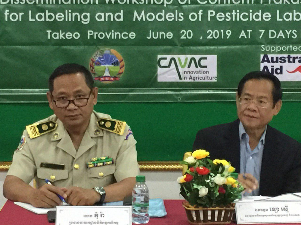 នៅព្រឹកថ្ងៃព្រហស្បតិ៍ ៣រោច ខែជេស្ឋ ឆ្នាំកុរ ឯកស័ក ព.ស ២៥៦៣ ត្រូវនឹងថ្ងៃទី២០ ខែមិថុនា ឆ្នាំ២០១៩ នាយកដ្ឋាននីតិកម្មកសិកម្ម បានរៀបចំសិក្ខាសាលាផ្សព្វផ្សាយខ្លឹមសារប្រកាសស្តីពីគោលការណ៍ណែនាំសម្រាប់ស្លាកសញ្ញាព័ត៌មាន និងគំរូស្លាកសញ្ញាព័ត៌មាននៃ ថ្នាំកសិកម្ម ក្រោមអធិបតីភាពឯកឧត្តម ឡោ រស្មី អនុរដ្ឋលេខា ធិការក្រសួងកសិកម្ម រុក្ខាប្រមាញ់និងនេសាទតំណាងឯកឧត្តម វេង សាខុន រដ្ឋមន្ត្រីក្រសួងកសិកម្ម រុក្ខាប្រមាញ់ និងនេសាទ លោក ភុំ រ៉ា ប្រធាននាយកដ្ឋាននីតិកម្មកសិកម្ម លោកប្រធានមន្ទីកសិកម្ម រុក្ខាប្រមាញ់ និងនេសាទខេត្ត នៅខេត្តតាកែវ ដែលឧបត្ថមគាំទ្រដោយអង្គការ CAVAC ។