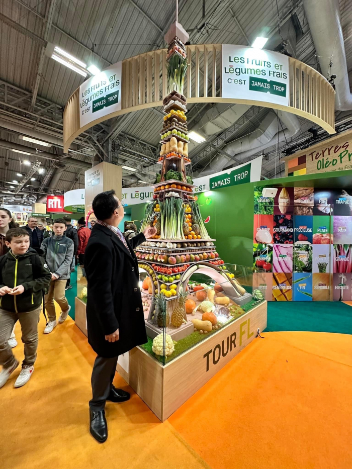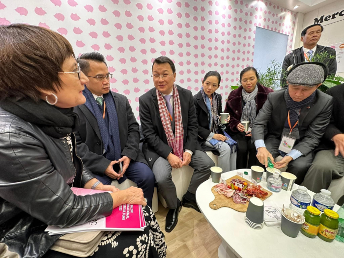 នាថ្ងៃដំបូងនៃដំណើរទស្សនកិច្ចនេះ ឯកឧត្តមរដ្ឋមន្ដ្រីបានទទួលការស្វាគមន៍ពីឯកឧត្តម Marc Fesneau រដ្ឋមន្ដ្រីក្រសួងកសិកម្ម និងអធិបតេយ្យភាពស្បៀងអាហារនៃប្រទេសបារាំង និងកំពុងអញ្ជើញទស្សនាសាលពិព័រណ៌ ដោយចាប់ផ្ដើមពីផ្នែកផលិតកម្មសត្វ និងផ្នែកការធ្វើកសិកម្មទំនើប៕