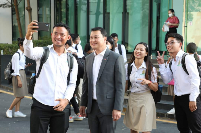 នារសៀលថ្ងៃទី១៧ ខែកុម្ភៈ ឆ្នាំ២០២៣ ឯកឧត្តម ឌិត ទីណា រដ្ឋមន្ត្រីក្រសួងកសិកម្ម រុក្ខាប្រមាញ់ និងនេសាទ និងថ្នាក់ដឹកនាំ បានចូលរួមពីសំណេះសំណាលជាមួយនិស្សិតស្ម័គ្រចិត្តចំនួន ២១១នាក់ មកពីសាកលវិទ្យាល័យភូមិន្ទកសិកម្ម។