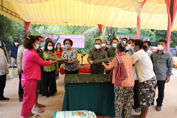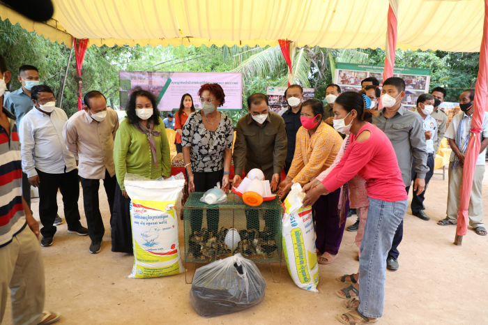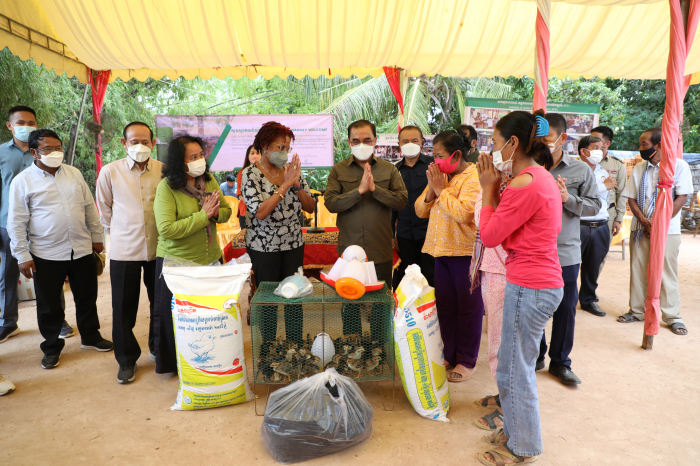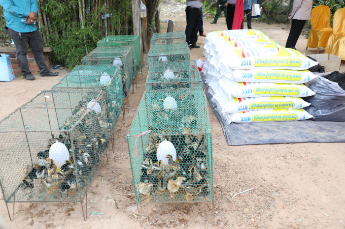 ឯកឧត្តមរដ្ឋមន្ត្រី វេង សាខុន និងលោកស្រីនាយិការធនាគារពិភពលោកប្រចាំនៅកម្ពុជា ព្រមទាំងសហការី បាននាំយកកូនមាន់ និងសម្ភារ:ចិញ្ចឹមមាន់ មកចែកជូនប្រជាពលរដ្ឋចំនួន ២៤គ្រួសារ និងធាតុចូលវារីវប្បកម្មចំនួន ៥គ្រួសារ នៅភូមិអណ្តូងត្រាំង ឃុំស្រម៉ ស្រុកជើងព្រៃ ខេត្តកំពង់ចាម