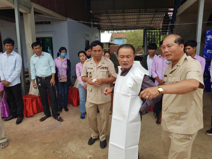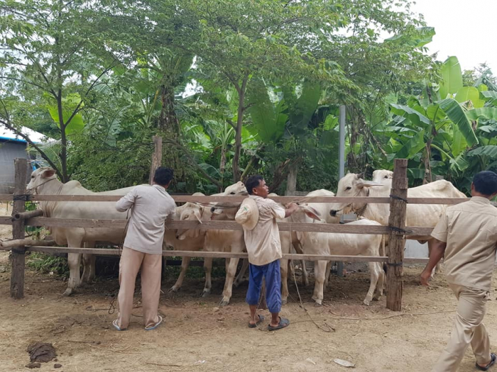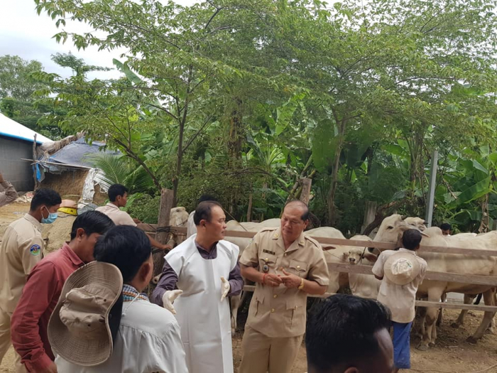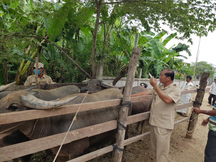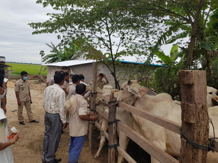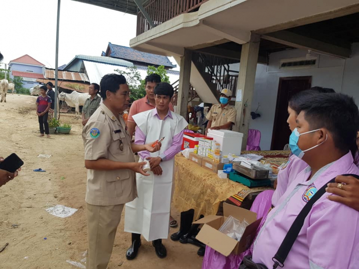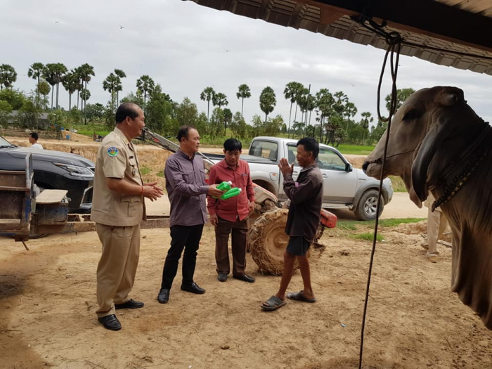 នាព្រឹកថ្ងៃព្រហស្បត្តិ៍ ៩រោច ខែស្រាពណ៍ ឆ្នាំជូត ទោស័ក ព.ស.២៥៦៤ ត្រូវនឹងថ្ងៃទី១៣ ខែសីហា ឆ្នាំ២០២០ ឯកឧត្តម តាន់ ផាន់ណារ៉ា ប្រតិភូរាជរដ្ឋាភិបាលកម្ពុជាទទួលបន្ទុកជាអគ្គនាយកនៃអគ្គនាយកដ្ឋានសុខភាពសត្វ និងផលិតកម្មសត្វ បានដឹកនាំក្រុមការងាររបស់អគ្គនាយកដ្ឋានសុខភាពសត្វ និងផលិតកម្មសត្វ ចុះពិនិត្យមើលស្ថានភាពសុខភាពសត្វ និងចាក់វ៉ាក់សាំងការពារជំងឺសារទឹក និងជំងឺអុតក្ដាមគោ ក្របីដល់កសិករនៅភូមិគោកពោធិ៍ ឃុំសំបួរ ស្រុកទ្រាំង ខេត្តតាកែវ កម្មវិធីនេះ មានការអញ្ជើញចូលរួមពីមន្ទីរកសិកម្ម រុក្ខាប្រមាញ់ និងនេសាទខេត្តតាកែវ មន្ត្រីជំនាញផលិតកម្ម និងបសុព្យាបាលខេត្តតាកែវ អាជ្ញាធរមូលដ្ឋាន និងភ្នាក់ងារសុខភាពសត្វភូមិ ជាលទ្ធផលសម្រេចបានពីការចាក់វ៉ាកសាំងមានគោ ក្របីសរុបចំនួន១០៦៤ក្បាល ក្នុងនោះក្របីចំនួន៤៧៣ក្បាល។