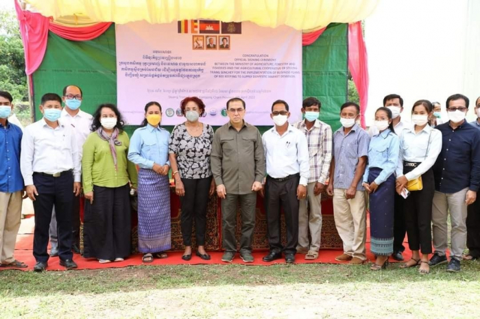 ឯកឧត្តម វេង សាខុន រដ្ឋមន្ត្រីក្រសួងកសិកម្ម រុក្ខាប្រមាញ់ និងនេសាទ និងលោកស្រី Maryam Salim នាយិកាធនាគារពិភពលោក (World Bank, WB) ប្រចាំនៅកម្ពុជា បានអញ្ជើញជាអធិ បតីក្នុងពិធីចុះកិច្ចព្រម ព្រៀងហិរញ្ញប្បទានឥតសំណងបំពេញបន្ថែមទុនវិនិយោគ រវាងគម្រោងពិពិធកម្មកសិកម្មកម្ពុជា ជាមួយសហគមន៍កសិកម្មស្ទឹងត្រង់សែនជ័យ ដែលពិធីនេះបានប្រារព្វឡើងនៅភូមិ អង្កោល ឃុំ សូភាស ស្រុកស្ទឹងត្រង់ ខេត្តកំពង់ចាម។ ក្នុងពិធីដ៏មានសារ:សំខាន់នេះ ក៏ឃើញមានវត្តមានឯកឧត្តម លោក លោកស្រី អញ្ជើញមកពីក្រសួងកសិកម្ម រុក្ខាប្រមាញ់ និងនេសាទ សហការីនៃធនាគារ ពិភពលោក តំណាងក្រសួងសេដ្ឋកិច្ច និងហិរញ្ញវត្ថុ ក្រសួងធនធាន ទឹក និងឧតុនិយម ក្រសួងអភិវឌ្ឍន៍ជនបទ មន្រ្តីអនុវត្តគម្រោង លោកប្រធាន អនុប្រធាន និងសមាជិកសហគមន៍កសិកម្មស្ទឹងត្រង់សែនជ័យ និងអាជ្ញាធរមូលដ្ឋានប្រមាណ ១៤៩នាក់។