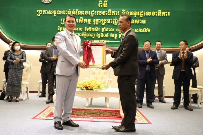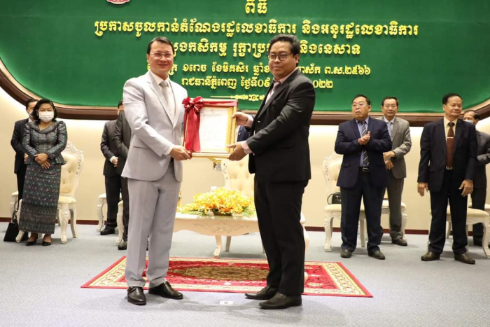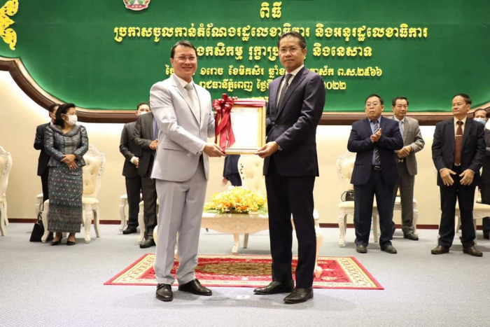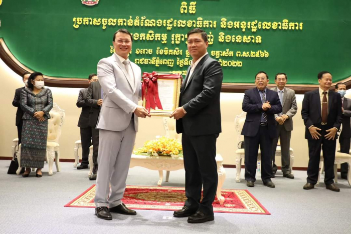 ឯកឧត្តមរដ្ឋមន្រ្តី ឌិត ទីណា បានអញ្ជើញអធិបតីភាពក្នុងពិធីប្រកាសចូលកាន់តំណែងរដ្ឋលេខាធិការ និងអនុរដ្ឋលេខាធិការនៃក្រសួងកសិកម្ម រុក្ខាប្រមាញ់ និងនេសាទ