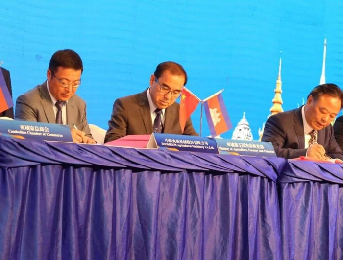 នៅសណ្ឋាគារ The Gread Duke នាព្រឹកថ្ងៃអង្គារ ៨រោច ខែកត្តិក ឆ្នាំកុរ ឯកស័ក ព.ស. ២៥៦៣ ត្រូវនឹងថ្ងៃទី១៩ ខែវិច្ឆិកា ឆ្នាំ២០១៩ ឯកឧត្តម វេង សាខុន រដ្ឋមន្ត្រីក្រសួងកសិកម្ម រុក្ខាប្រមាញ់ និងនេសាទ បានចុះហត្ថលេខាលើឯកសារអនុស្សរណៈនៃការ យោគយល់គ្នាស្តីពី "ការជំរុញការងារស្រាវជ្រាវ និងការប្រើប្រាស់គ្រឿងយន្តកសិកម្ម និងបច្ចេក វិទ្យាកសិកម្មវៃឆ្លាត" ជាមួយក្រុមហ៊ុនវិទ្យាសាស្រ្តធន់ធ្ងន់ និងបច្ចេកវិទ្យា Zoomlion នៃសាធា រណរដ្ឋប្រជាមានិតចិន ដែលពិធីនេះស្ថិតក្រោមអធិបតីភាពឯកឧត្តម ស៊ុន ចាន់ថុល ទេសរដ្ឋ មន្ត្រី រដ្ឋមន្ត្រីក្រសួងសាធារណ:ការ និងដឹកជញ្ជូន និងឯកឧត្តម DU Jiahao សមាជិកគណ: កម្មាធិការមជ្ឈឹមបក្ស និងជាលេខាធិការគណ:កម្មាធិការបក្សកុម្មុយនីស្តចិនខេត្តហ៊ូណាន និងមានការចូលរួមពីឯកឧត្តមថ្នាក់ដឹកនាំក្រសួង ស្ថាប័នពាក់ព័ន្ធ សភាពាណិជ្ជកម្មកម្ពុជា វិស័យឯកជន លោក លោកស្រី និងក្រុមប្រតិភូអញ្ជើញមកពីខេត្តហ៊ូណាន។