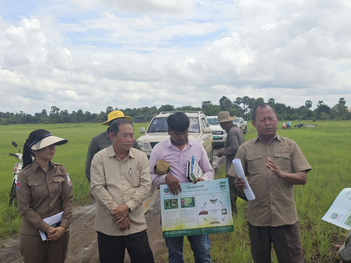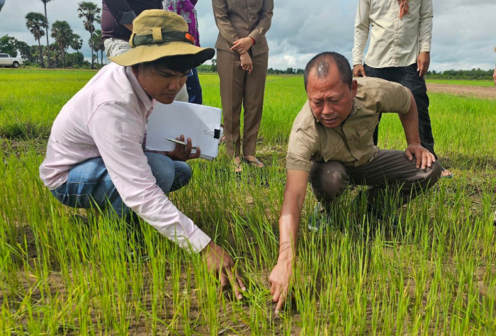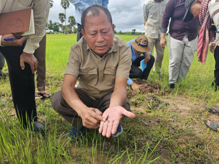 នៅថ្ងៃទី២៧ ខែមិថុនា ឆ្នាំ២០២៤ ឯកឧត្តម ម៉ៅ រិទ្ធីថា រដ្ឋលេខាធិការក្រសួងកសិកម្ម រុក្ខាប្រមាញ់ និងនេសាទ បានអញ្ជើញដឹកនាំមន្ត្រីជំនាញ ចុះពិនិត្យដំណាំ ដែលរងការបំផ្លិចបំផ្លាញដោយសត្វល្អិតចង្រៃ (ដង្កូវហ្វូង) ក្នុងខេត្តត្បូងឃ្មុំ ដែលមានការអញ្ជើញចូលរួមពី ឯកឧត្តម ចាន់ សុវត្ថិភាព អនុរដ្ឋលេខាធិការ តំណាងអគ្គនាយកដ្ឋានកសិកម្ម លោកប្រធានមន្ទីរកសិកម្ម រុក្ខាប្រមាញ់ និងនេសាទ ខេត្តត្បូងឃ្មុំ មន្រ្តីជំនាញពាក់ព័ន្ធ មន្រ្តីកសិកម្មឃុំ អាជ្ញាធរមូលដ្ឋាន និងប្រជាកសិករដែលរងផលប៉ះពាល់ដំណាំស្រូវ។