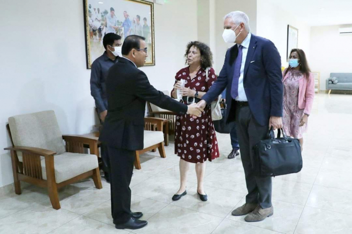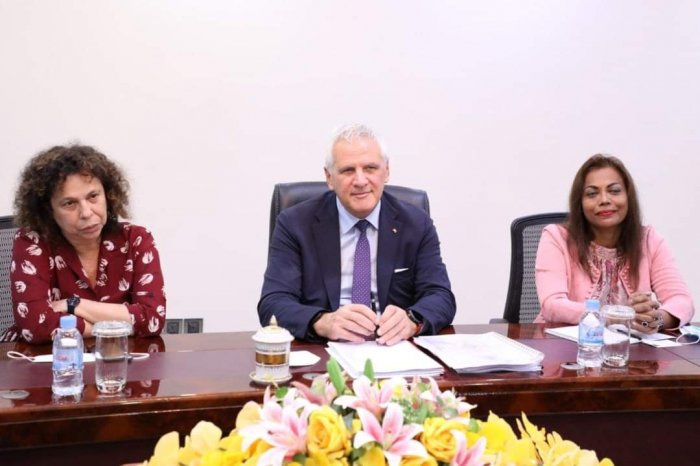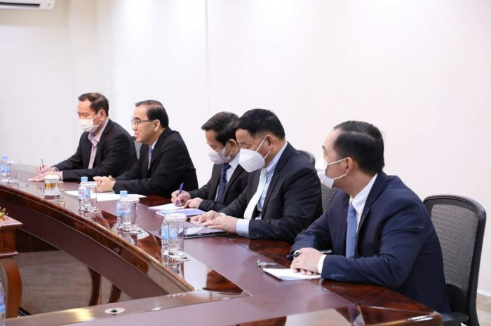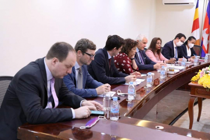 នៅទីស្តីការក្រសួងកសិកម្ម រុក្ខាប្រមាញ់ និងនេសាទ វេលាម៉ោង ១៤:៣០ ថ្ងៃអង្គារ ៣រោច ខែភទ្របទ ឆ្នាំខាល ចត្វាស័ក ព.ស. ២៥៦៦ ត្រូវនឹងថ្ងៃទី១៣ ខែកញ្ញា ឆ្នាំ២០២២ ឯកឧត្តមរដ្ឋមន្រ្តី វេង សាខុន បានទទួលជួបក្រុមមន្រ្តីជាន់ខ្ពស់នៃធនាគារវិនិយោគសហភាពអឺរ៉ុប European Investment Bank, EIB ដឹកនាំដោយលោក Kris Peeters អនុប្រធានធនាគារវិនិយោគអឺរ៉ុប (Vice President of EIB) អមដោយលោកជំទាវ Carmen Moreno ឯកអគ្គរដ្ឋទូតសហភាពអឺរ៉ុបប្រចាំព្ររាជាណាចក្រកម្ពុជា។ ជំនួបនារសៀលនេះមានគោលបំណងចំនួនពីរ គឺទី១. ពង្រឹង និងពង្រីកកិច្ចសហប្រតិបត្តិការលើការវិនិយោគលើវិស័យកសិកម្ម និងទី២. ធ្វើការចែករំលែកទស្សនវិស័យលើតម្រូវការអភិវឌ្ឍវិស័យកសិកម្មនាពេលអនាគត។ ជាបឋម ឯកឧត្តមរដ្ឋមន្ដ្រីបានមានមតិស្វាគមន៍ និងរាយការណ៍ជូនភ្ញៀវបានជ្រាបអំពីវឌ្ឍនភាពវិស័យកសិកម្មជាជំហានៗ រហូតមដល់បច្ចុប្បន្នដែលបានក្លាយជាប្រទេសមួយមានសន្តិសុខស្បៀង អាហារូបត្ថម្ភ និងឈានទៅជាប្រទេសនាំចេញកសិផលសំខាន់ៗមួយចំនួនទៅកាន់ទីផ្សារក្នុងតំបន់ និងទីផ្សារពិភពលោក ក្នុងនោះក៏មានទីផ្សារសហភាពអឺរ៉ុបផងដែរ។ កម្ពុជាកំពុងធ្វើការអភិវឌ្ឍបន្ថែម ដើម្បីឆ្លើយតបទៅតាមនិន្នាការទីផ្សារអន្តរជាតិដែលចេះតែមានការកើនឡើងជាលំដាប់ទាក់ទងទៅនឹងគុណភាព សុវត្ថិភាព និងភូតគាមអនាម័យ។ល។ ហេតុផលនេះ ក្រសួងកសិកម្ម រុក្ខាប្រមាញ់ និងនេសាទ ត្រូវការជាចាំបាច់នូវការធ្វើទំនើបកម្មកសិកម្ម ពិពិធកម្មកសិកម្ម ការកសាងហេដ្ឋារចនាសម្ព័ន្ធគាំទ្រដល់ការកែច្នៃ និងខ្សែច្រវាក់តម្លៃបន្ថែម និងអភិវឌ្ឍធនធានមនុស្ស ដែលកម្មវត្ថុទាំងអស់នេះត្រូវការជំនួយឧបត្ថម្ភ ការគាំទ្រ និងកិច្ចសហការពីវិស័យឯកជន និងដៃគូអភិវឌ្ឍន៍ក្នុងនោះក៏មានសហភាពអឺរ៉ុបផងដែរ។ ឯកឧត្តមសង្ឃឹមថាធនាគារ EIB នឹងក្លាយជាដៃគូរដ៏ល្អមួយទៀតរបស់កម្ពុជានាពេលអនាគត។ នាឱកាសនេះ លោក Kris Peeters បានជម្រាបជូនឯកឧត្តមរដ្ឋមន្រ្តីថា ដំណើរបេសកកម្មរបស់លោកមកកម្ពុជានាពេលនេះ មានបំណងចង់សិក្សាស្វែងយល់បន្ថែមថាតើ ធនាគារ EIB អាចចូលរួមសហការជួយអភិវឌ្ឍវិស័យកសិកម្មកម្ពុជានាពេលអនាគតដ៏ខ្លីបានក្នុងកម្រិតណា។ លោកបានបញ្ជាក់បន្ថែមថាវិស័យកសិកម្ម គឺជាឆ្អឹងខ្នងសេដ្ឋកិច្ចរបស់កម្ពុជា ការអភិវឌ្ឍវិស័យនេះឲ្យមានការរីកចម្រើនស្របតាមកំណើនសេដ្ឋកិច្ចជាតិគឺជាកត្តាសំខាន់ដែលចាំបាច់ត្រូវមានកិច្ចសហការពីបណ្តាដៃគួពាក់ព័ន្ធ។ ឆ្វេងយល់ពីទស្សនវិស័យ និងកត្តាសំខាន់នៃវិស័យកសិកម្មនៅតំបន់អាស៊ី ធនាគារ EIB ថ្មីៗនេះបានបើកការិយាល័យប្រចាំតំបន់នៅទីក្រុងហ្សាការតា ប្រទេសឥណ្តូនេស៊ី។ លោក Kris Peeters បន្ថែមថាតួនាទីបីសំខាន់របស់ ធនាគារ EIB រួមមាន÷ ទី១- ផ្តល់ប្រាក់កម្ចី ទី២- ការគាំទ្រលើការអនុវត្តគម្រោងរបស់សហភ