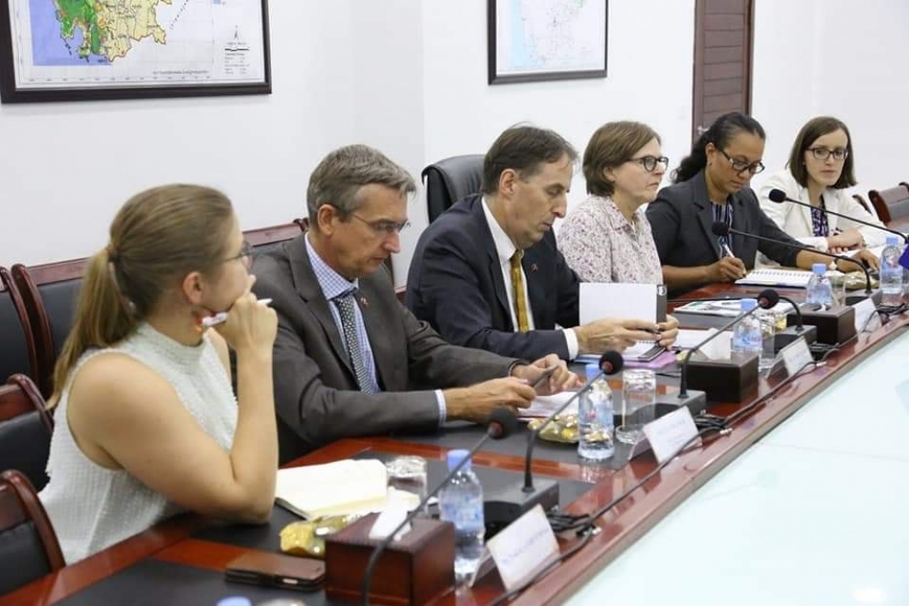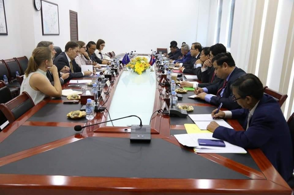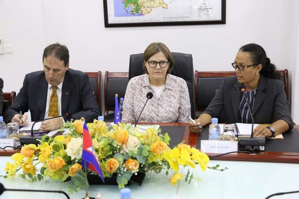 ឯកឧត្តមរដ្ឋមន្ត្រី វេង សាខុន បានអនុញ្ញាតលោកជំទាវ Heidi Hautala អនុប្រធានសភាសហភាពអឺរ៉ុប និងឯកឧត្តម George Edgar ឯកអគ្គរដ្ឋទូតសហភាពអ៊ឺរ៉ុបប្រចាំព្រះរាជាណាចក្រកម្ពុជា និងសហការីចូលជួបសម្តែងការគួរសម