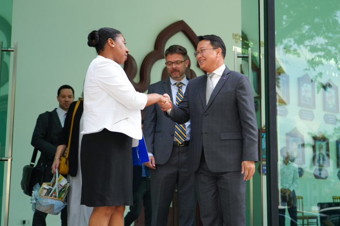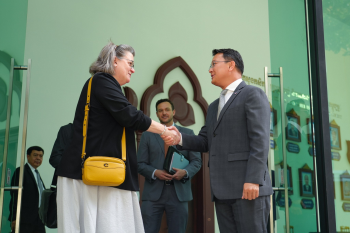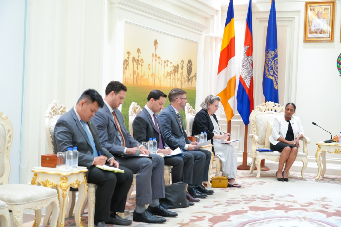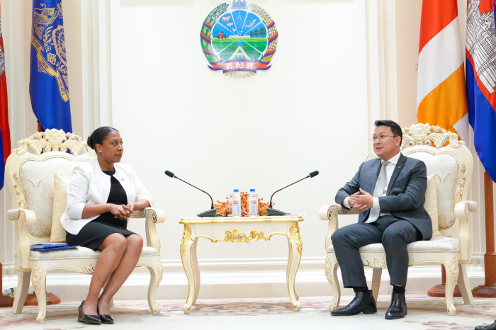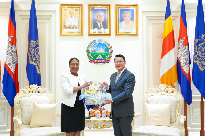 នារសៀលថ្ងៃទី២១ ខែឧសភា ឆ្នាំ២០២៥ ឯកឧត្តម ឌិត ទីណា រដ្ឋមន្ត្រីក្រសួងកសិកម្ម រុក្ខាប្រមាញ់ និងនេសាទ បានទទួលជួបជាមួយលោកជំទាវ ប្រៃហ្គេត អែល វ៉កឃឺរ (Bridgette L. Walker) ភារធារីស្តីទីនៃស្ថានទូតសហរដ្ឋអាមេរិក ប្រចាំនៅព្រះរាជាណាចក្រកម្ពុជា ជួបពិភាក្សាការងារ នៅទីស្តីការក្រសួងកសិកម្ម រុក្ខាប្រមាញ់ និងនេសាទ៕