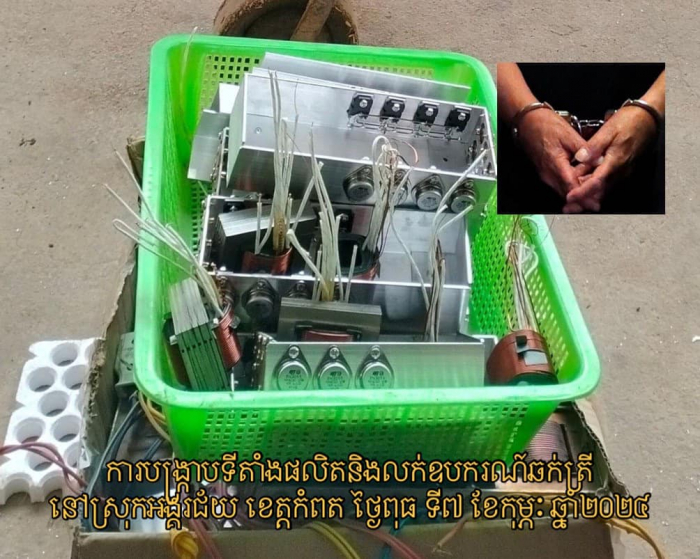 នៅក្នុងយុទ្ធនាការចុះបង្ក្រាបនេះ សមត្ថកិច្ចនិងអាជ្ញាធរពាក់ព័ន្ធ បានដកហូតវត្ថុតាងនៅទីតាំងជាក់ស្ដែង រួមមាន ឧបករណ៍អាំងវែទ័រឆក់ត្រីចំនួន ១១គ្រឿង និងឧបករណ៍គ្រឿងបង្គំចំនួន ១៦គ្រឿង ព្រមទាំងបានឃាត់ខ្លួនអ្នកផលិតឧបករណ៍ឆក់ទាំងនេះចំនួន២រូប ក្នុងនោះ ម្នាក់ឈ្មោះ នាង សារ៉ាក់ ភេទប្រុស អាយុ៤០ឆ្នាំ និងម្នាក់ទៀតឈ្មោះ យែម ភា ភេទប្រុស អាយុ៤៤ឆ្នាំ។