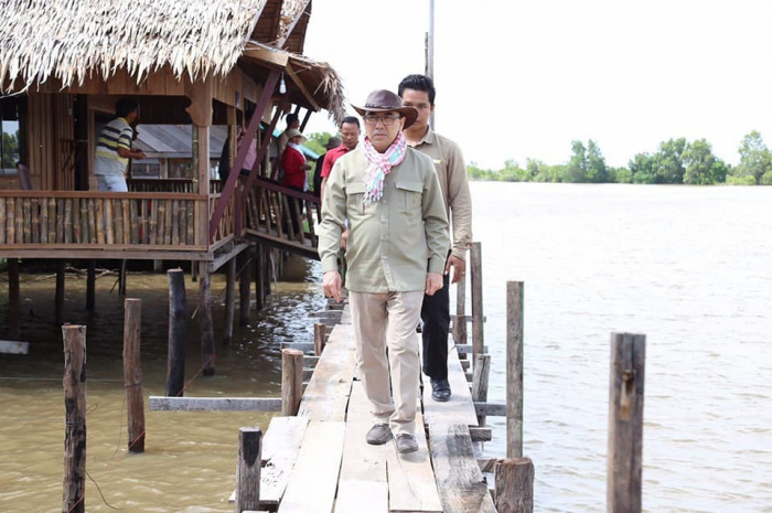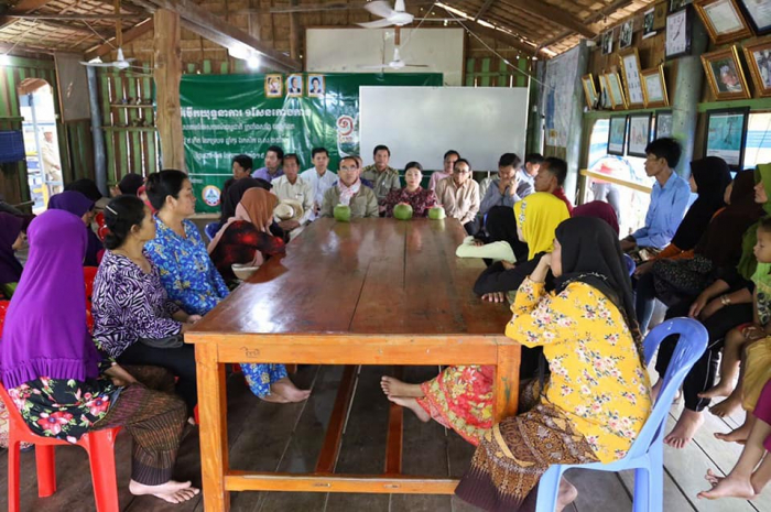 អញ្ជើញចេញពីកសិដ្ឋានចិញ្ចឹមបង្គារដែលវិនិយោគដោយវិស័យឯកជន ឯកឧត្តមរដ្ឋមន្ត្រី និងអភិបាលរងខេត្ត រួមជាមួយសហការី បានបន្តដំណើរមកសំណេះសំណាលជាមួយសមាជិកសហគមន៍នេសាទត្រពាំងសង្កែ ចំនួន៣៣គ្រួសារ ឃុំព្រែកត្នោត។ រាយការណ៍ជូនលោក រដ្ឋមន្រ្តីជ្រាប លោកពូ សឹម ហីម ប្រធានសហគមន៍នេសាទ បានឲ្យដឹងថាសហគមន៍នេះបានបង្កើតឡើងនៅឆ្នាំ ២០០៩ ចុះបញ្ជីទទួលស្គាល់ជាផ្លូវការនៅក្រសួងកសិកម្ម រុក្ខាប្រមាញ់ និងនេសាទក្នុងឆ្នាំ២០១១ បច្ចុប្បន្នសមាជិក៧៣៤ នាក់ អញ្ជើញមកពី ៥២៧គ្រួសារ មានផ្ទៃដី ៣៣៧ ហត គ្របដណ្តប់ទូទាំងឃុំព្រែកត្នោត មាន៣ភូមិ ក្នុងនោះមានផ្ទៃដីព្រៃកោងកាង ៣៧ហត ដាំបន្ថែមបាន ៣ម៉ឺនដើម ហើយក៏មានគម្រោងដាំបន្ថែមទៀតដើម្បីពង្រីកផ្ទៃដីឈើកោងកាងសម្រាប់ ជាប្រយោជន៍ដលប្រជាសហគមន៍នាពេលអនាគត។ លោក ហីម បន្ថែមទៀតថាមុនបង្កើតសហគមន៍ក្នុង១ថ្ងៃចេញទៅនេសាទបានចំណូលត្រឹមតែ ១ម៉ឺនរៀល បច្ចុប្បន្នចំណូលកើនដល់៤-៥ម៉ឺនរៀល។ ដោយឡែកចំពោះសហគមន៍អាចរកចំណូលបាន ៤-៥លានរៀល តាមរយ: ការផ្តល់សេវាម្ហូបអាហារ ផ្ទះសំណាក់ ទូកទេសចរណ៍ និងអាជីវកម្មផ្សេងៗទៀត។ ក្រៅពីចំណូល សហគមន៍បានចូលរួមការពារព្រៃកោងកាង ទប់ស្កាត់ការទន្រ្ទានយកដី និងព្រៃកោងកាងធ្វើជាកម្មសិទ្ធិ ការពារផលនេសាទ និងជីវចម្រុះគ្រប់ប្រភេទសម្រាប់ជំនាន់នេះ និងជំនាន់ក្រោយ កាត់ បន្ថយចំណាកស្រុក ក្មួយៗកុមារមានឱកាសចូលរៀនគ្រប់ៗគ្នា។ ជាមួយសមិទ្ធផលដែលសហគមន៍សម្រេចបាន លោក ហីម ក៏បានសម្តែងនូវក្តីបារម្ភទាក់ទងការងារគ្រប់គ្រងសំរាម បទល្មើសនេសាទ ព័ត៌មានស្តីពីគម្រោងអភិវឌ្ឍគម្រោងដែលអាចប៉ះពាល់ដល់សហគមន៍។