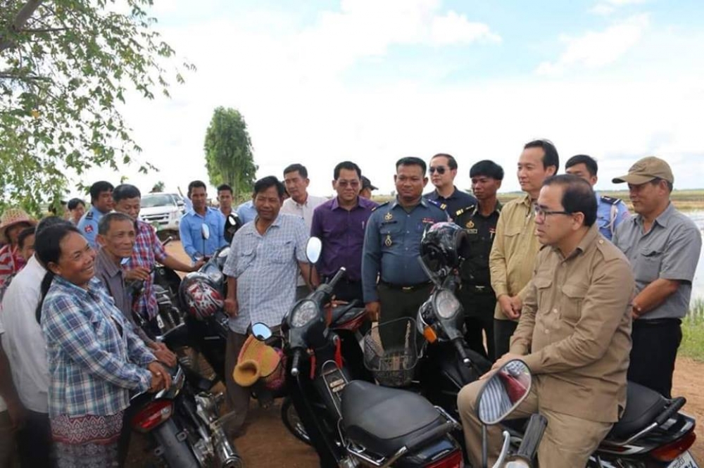 ចេញពីចំការបន្លែនៅក្រុងសេរី សោភ័ណ្ឌ បានបន្តដំណើរចុះពិនិត្យស្ថានភាពការលិចលង់ដំណាំស្រូវដោយទឹកជំនន់កន្លងមក នៅភូមិក្រមុល ឃុំរហាត់ទឹក ស្រុកមង្គលបុរី