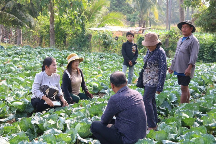 ថ្ងៃទី១៦ ខែមីនា ឆ្នាំ២០២៣ លោកស្រី ជ័យ ចន្នី អនុប្រធានមន្ទីរកសិកម្ម រុក្ខាប្រមាញ់ និងនេសាទខេត្តពោធិ៍សាត់ រួមជាមួយ លោក ម៉ែន វណ្ណ: ប្រធានការិយាល័យផ្សព្វផ្សាយកសិកម្ម និង ក្រុមការងារបច្ចេកទេសផលិតកម្មបន្លែ បានចុះពិនិត្យស្ថានភាពការប្រមូលផលដំណាំស្ពៃក្តោបសុវត្ថិភាព របស់អ៊ំស្រី ប៊ិល ហ៊ុន ភេទស្រី អាយុ ៦៣ ឆ្នាំ រស់នៅភូមិវត្តពោធ៍ពីរ ឃុំអន្លង់វិល ស្រុកកណ្តៀង ខេត្តពោធិ៍សាត់ ។