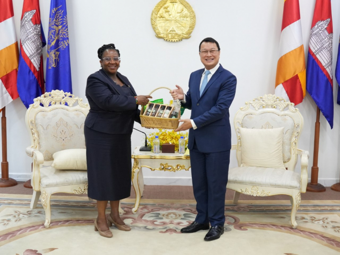 នៅព្រឹកថ្ងៃទី១៨ ខែសីហា ឆ្នាំ២០២៣ ឯកឧត្តម ឌិត ទីណា រដ្ឋមន្ត្រីក្រសួងកសិកម្ម រុក្ខាប្រមាញ់ និងនេសាទ និងថ្នាក់ដឹកនាំ បានទទទួលជួបសម្តែងការគួរសមជាមួយលោកជំទាវ Constance Chemwayi ឯកអគ្គរដ្ឋទូតតែងតាំងថ្មី នៃសាធារណរដ្ឋស៊ីមបាវ៉េ នៅទីស្តីការក្រសួងកសិកម្ម រុក្ខាប្រមាញ់ និងនេសាទ។