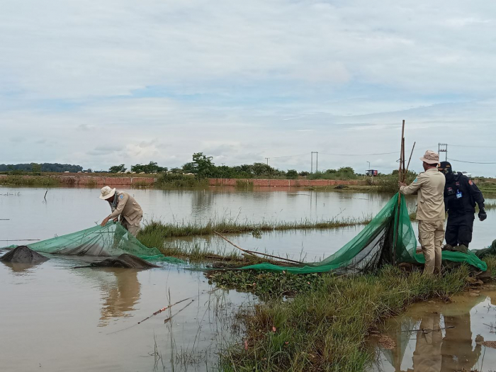 នៅថ្ងៃទី១៦ ខែកញ្ញា ឆ្នាំ២០២៥ ឯកឧត្តម ទឹម បូរក្ស អនុរដ្ឋលេខាធិការក្រសួងកសិកម្ម រុក្ខាប្រមាញ់ និងនេសាទ តាមការណែនាំពី ឯកឧត្តមរដ្ឋលេខាធិការ ហាស់ សារ៉េត អញ្ជើញដឹកនាំកម្លាំងខណ្ឌរដ្ឋបាលជលផលត្បូងឃ្មុំ កម្លាំងអធិការដ្ឋានរដ្ឋបាលជលផលមេគង្គ កម្លាំងគណៈកម្មការសហគមន៍នេសាទបឹងក្រពិត សហការជាមួយកម្លាំងយោធាភូមិភាគ២ កម្លាំងគណៈបញ្ជាការឯកភាពរដ្ឋបាលស្រុកអូររាំងឪ ដឹកនាំដោយលោក ចាន់ សុខាវង្ស អភិបាលរងស្រុកអូររាំងឪ សរុបចំនួន១៦នាក់ បានចុះល្បាត ត្រួតពិនិត្យ និងបង្រ្កាបបទល្មើសជលផល នៅក្នុងភូមិសាស្ត្រឃុំមៀន ស្រុកអូររាំងឪ ខេត្តត្បូងឃ្មុំ។