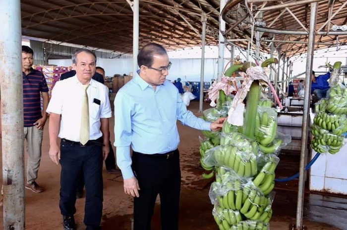 បន្ទាប់ពីបានអញ្ជើញចុះពិនិត្យខ្សែច្រវាក់ផលិតកម្ម និងប្រមូលផលរបស់ក្រុមហ៊ុនរួចមក ឯកឧត្តមរដ្ឋមន្រ្តីបានចូលរួមអបអរសាទរ និងវាយតម្លៃខ្ពស់ចំពោះកិច្ចខិតខំប្រឹងប្រែង ពុះពារ និងជំនះបាននូវរាល់បញ្ហាប្រឈមនានារហូតសម្រេចបានជោគជ័យដែលស្តែងចេញឲ្យឃើញនូវសមិទ្ធផលដូចយើងបានទទួលនាថ្ងៃនេះ។ លោកក៏បានសម្តែងនូវអំណរគុណជូនចំពោះរដ្ឋា ភិបាលចិន តាមរយ:អគ្គនាយកដ្ឋានគយនៃសាធារណ:រដ្ឋប្រជាមានិតចិនដែលបានវាយតម្លៃលើគុណភាពចេកកម្ពុជា និងបានអនុញ្ញាតឲ្យក្រុមហ៊ុនទាំង៤ អាចនាំចេញផ្លែចេកស្រស់ទៅកាន់ទីផ្សារចិនបន្ថែមទៀត។ អ្វីដែលសំខាន់នោះគឺ នាយកដ្ឋានគយចិនក៏បានវាយតម្លៃកន្លែងវេចខ្ចប់ផ្លែចេករបស់ក្រុមហ៊ុនថាមានស្តង់ដារគុណភាព និងសុវត្ថិភាពល្អជាងគេក្នុងតំបន់អាស៊ាន។ ភ្ជាប់ទៅនឹងការវិនិយោគនេះ ឯកឧត្ដមរដ្ឋមន្ត្រីបានជម្រាបជូនភ្ញៀវថា ស្ថិតក្នុងបរិបទនៃកំណើនសេដ្ឋកិច្ច ការរីកចម្រើនផ្នែកបច្ចេកវិទ្យាកសិកម្ម ការកែច្នៃ វេចខ្ចប់ និងនាំចេញ ក្រសួងកសិកម្ម រុក្ខាប្រមាញ់ និងនេសាទបាននិងកំពុងខិតខំពង្រឹងកិច្ចសហប្រតិបត្ដិការជាមួយដៃគូអភិវឌ្ឍន៍នានា និងវិស័យឯកជន ដើម្បីគាំទ្រលើការវិនិយោគគ្រប់ខ្សែច្រវាក់តម្លៃកសិកម្មចាប់ពីចំណុច A ដល់ Z តាមរយៈការបង្កើនផលិតភាពផលិតផល ការវេចខ្ចប់ ការរក្សាស្តុកទុក ការកែច្នៃប្រកប ដោយគុណភាព អនាម័យ និងសុវត្ថិភាព សមស្របតាមស្តង់ដារនៃទីផ្សារនាំចេញ។ ដើម្បីសម្រេចគោលដៅនេះ ឯកឧត្តមរដ្ឋមន្រ្តីបានសំណូមពរបន្តរក្សាកិច្ចសហប្រតិបត្តិការឲ្យមានលក្ខណៈប្រទាក់ក្រឡាគ្នាជាមួយគ្រប់តួអង្គពាក់ព័ន្ធទាំងអស់ ជាពិសេសអាជ្ញាធរខេត្ត ក្នុងស្មារតីទទួល ខុសត្រូវខ្ពស់តាមអភិក្រម “រដ្ឋ-ឯកជន-ដៃគូអភិវឌ្ឍន៍ និងសហគមន៍” ធ្វើយ៉ាងណាចូលរួមគាំទ្រ និងជំរុញបរិមាណនាំចេញកសិផលកម្ពុជាទៅកាន់ទីផ្សារអន្តរជាតិឲ្យកាន់តែច្រើនថែមទៀតនាពេលអនាគត។ នាឱកាសនេះ ឯកឧត្តមរដ្ឋមន្ត្រីបានណែនាំក្រុមហ៊ុនធ្វើយ៉ាងណាបង្កើនកិច្ចសហប្រតិបត្តិការឲ្យកាន់តែល្អប្រសើរជាមួយគ្រប់ភាគីពាក់ព័ន្ធ ជាពិសេសជាមួយអគ្គនាយកដ្ឋានកសិកម្មក្នុងការអនុវត្តច្បាប់ និងបច្ចេកទេសសំដៅលើអនាម័យ និងភូតគាមអនាម័យ ធ្វើយ៉ាង ណាបង្កើនជំនឿទុកចិត្តលើគុណភាព និងសុវត្ថិភាពនៃផលិតផលពីអតិថិជនក្នុង និងក្រៅ ប្រទេស។ ព្រមជាមួយគ្នានេះ ក្រុមហ៊ុនក៏ត្រូវបង្កើនការយកចិត្តទុកដាក់លើស្ថានភាពជីវភាព និងសុខភាពរបស់បងប្អូនបុគ្គលិក កម្មករឲ្យបានល្អប្រសើរ។ ចំពោះអគ្គនាយកដ្ឋានកសិកម្មត្រូវយក ចិត្តទុកដាក់ក្នុងការផ្តល់វិញ្ញាបនបត្រ SPS ជូនក្រុមហ៊ុនឲ្យបានទាន់ពេលវេលា ចៀសវាងមានការយឺតយ៉ាវធ្វើឲ្យប៉ះពាល់ដល់ការនាំចេញ។