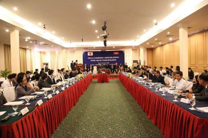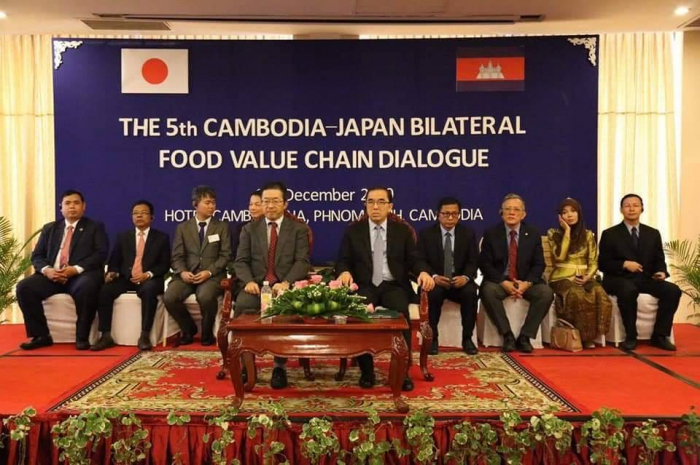នៅសណ្ឋាគារ Cambodiana នារសៀលថ្ងៃពុធ ៧រោច ខែមិគសិរ ឆ្នាំកុរ ឯកស័ក ព.ស ២៥៦៣ ត្រូវនឹងថ្ងៃទី១៨ ខែធ្នូ ឆ្នាំ២០១៩ ឯកឧត្តម វេង សាខុន រដ្ឋមន្រ្តីក្រសួងកសិកម្ម រុក្ខា ប្រមាញ់ និងនេសាទ និងឯកឧត្ដម MIKAMI Masahiro ឯកអគ្គរាជទូតជប៉ុនបានអញ្ជើញជាអធិបតីក្នុងកិច្ចសន្ទនាទ្វេភាគីកម្ពុជា-ជប៉ុនលើកទី៥ ស្ដីពី "ខ្សែច្រវាក់តម្លៃផលិតកម្មស្បៀង"។ ក្នុងពិធីនេះគេសង្កេតឃើញមានវត្តមានលោក KINOSHITA Hiroaki តំណាងក្រសួងកសិកម្ម រុក្ខាប្រមាញ់ និងនេសាទជប៉ុន ឯកឧត្ដម លោកជំទាវ តំណាងអង្គការ JICA ភ្ញៀវកិត្តិយសជាតិ អន្តរជាតិ វិស័យឯកជននៃប្រទេសទាំងពីរ អញ្ជើញចូលរួមយ៉ាងច្រើនកុះករ។