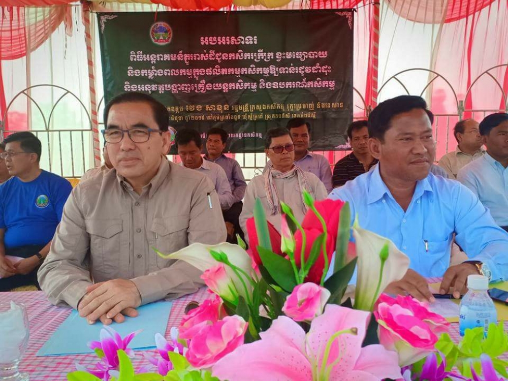 ឯកឧត្តម វេង សាខុន រដ្ឋមន្រ្តីក្រសួងកសិកម្ម រុក្ខាប្រមាញ់ និងនេសាទ បានអញ្ជើញជាអធិបតីក្នុងពិធីអន្តរាគមន៍ភ្ជួររាស់ដីជូនកសិករក្រីក្រ និងពិនិត្យការអនុវត្តបង្ហាញគ្រឿងយន្តកសិកម្ម