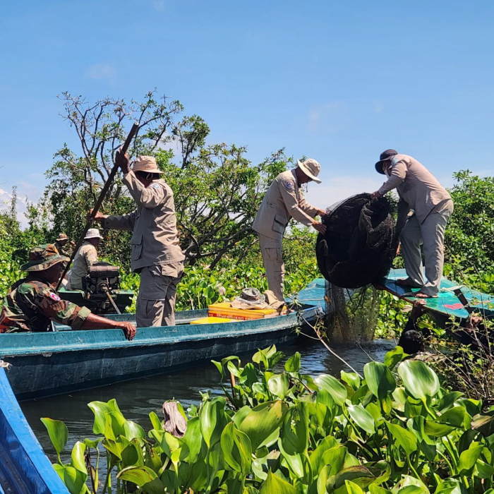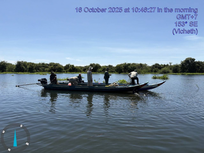 ថ្ងៃទី១៦ ខែតុលា ឆ្នាំ២០២៥ ឯកឧត្តម ប៉ែន ផល្លីកា អនុរដ្ឋលេខាធិការក្រសួងកសិកម្ម រុក្ខាប្រមាញ់ និងនេសាទ បានអញ្ជើញដឹកនាំក្រុមការងារជំនាញ រួមមាន លោក ប៉ី វិចិត្រ នាយរងអធិការដ្ឋានរដ្ឋបាលជលផលខាងជើងបឹងទន្លេសាប លោក ជិន ស៊ីថា នាយខណ្ឌរដ្ឋបាលជលផលកំពង់ធំ និងសហការី, លោកនាយសង្កាត់រដ្ឋបាលជលផលពាមបាង និងសហការី លោកនាយសង្កាត់រដ្ឋបាលជលផលស្ទោង និងសហការី ព្រមទាំងកម្លាំងចម្រុះទីបញ្ជាការស្រាលប្រចាំការឃុំពាមបាង ស្រុកស្ទោង ចេញប្រតិបត្តិការត្រួតពិនិត្យ ទប់ស្កាត់ និងបង្រ្កាបបទល្មើសធនធានជលផលនៅចំណុចបាឡត រហូតដល់បាទាល់ ឃុំពាមបាង ស្រុកស្ទោង ខេត្តកំពង់ធំ។
