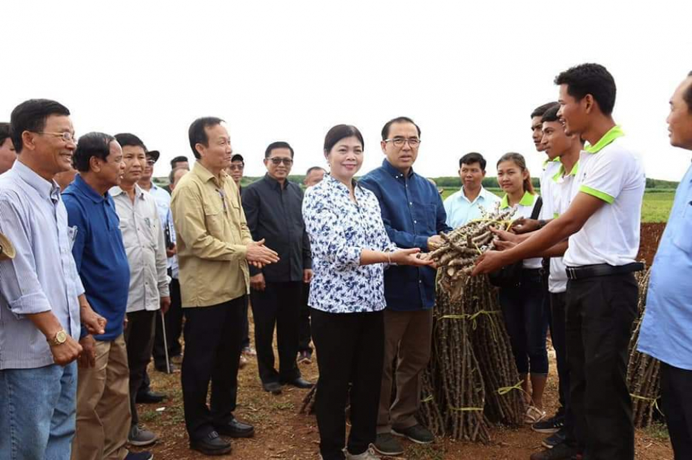 ឯកឧត្តមរដ្ឋមន្រ្តី អមដំណើរដោយសហការីបានអញ្ជើញមកដាំដំឡូងមីនៅកសិដ្ឋានផលិតពូជដំណាំតំបន់ដីខ្ពស់ចម្ការលើ និងជួបសំណេះសំណាលជាមួយមន្រ្តី បុគ្គលិក និងកម្មករដែលបម្រើ ការក្នុងកសិដ្ឋាននេះ ដែលមានទីតាំងស្ថិតនៅភូមិចម្កាលើ ក្នុងឃុំបុសខ្មុរ ស្រុកចម្ការលើ ខេត្តកំពង់ចាម។ សកម្មភាពនេះមានគោល បំណងចង់បង្ហាញដល់ប្រជា កសិករ ម្ចាស់ចម្ការ និងក្រុមហ៊ុមដែលដាំដំឡូងមីឲ្យយកចិត្តទុកដាក់អំពីពូជព្រោះថាបើមានការជ្រើសរើសពូជបានល្អនោះវានឹងផ្តល់ប្រយោជន៍សំខាន់ពីរយ៉ាងគឺ ទី១. ពូជល្អទិន្នផលកើនឡើង និងទី២.ពូជល្អគឺមានន័យថាគ្មានជំងឺឆ្លង ហើយក៏ចង់ជំរុញ និងគាំទ្រឲ្យអគ្គនាយកដ្ឋានកសិកម្មផលិតពូជដំឡូងមីមានគុណភាព មានផលិតភាពផលិតកម្មខ្ពស់ និងគ្មានជំងឺឆ្លងដើម្បីផ្សព្វផ្សាយពូជនេះជូនប្រជាកសិករនៅជុំវិញតំបន់នេះយកទៅធ្វើការដាំដុះ និងបន្តពង្រីកពូជដំឡូងមីឲ្យបានទូលំទូលាយទូទាំងប្រទេសឲ្យបានគ្រប់គ្រាន់ ឈានទៅកាត់បន្ថយបរិមាណនាំចូល និងជាពិសេសកាត់បន្ថយហានីភ័យនៃជំងឺឆ្លងដំឡូងមីម៉ូសាអ៊ិច។