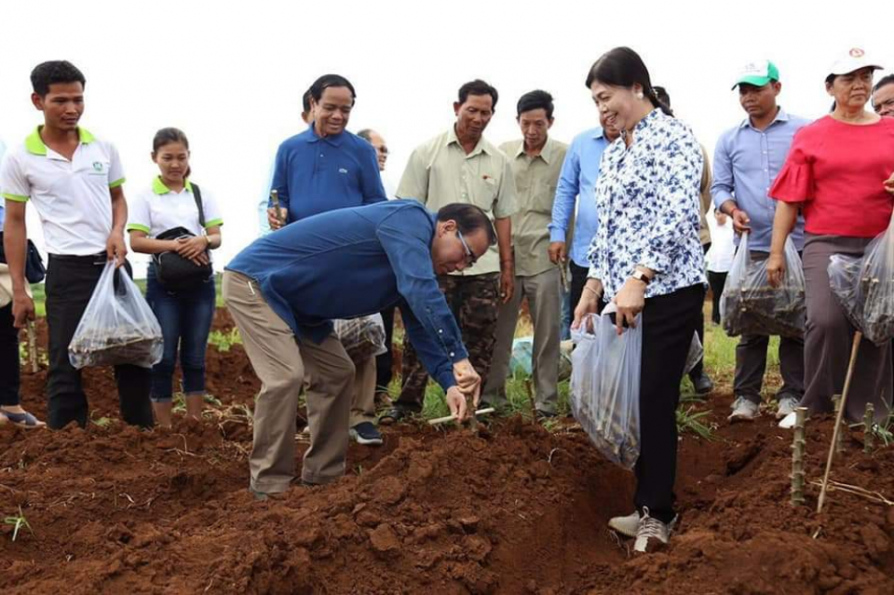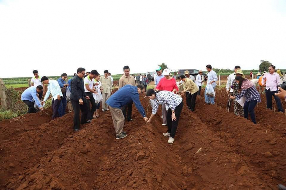 ឯកឧត្តមរដ្ឋមន្រ្តី វេង សាខុន អមដំណើរដោយសហការីបានអញ្ជើញមកដាំដំឡូងមីនៅកសិដ្ឋានផលិតពូជដំណាំតំបន់ដីខ្ពស់ចម្ការលើ និងជួបសំណេះសំណាលជាមួយមន្រ្តី បុគ្គលិក និងកម្មករ