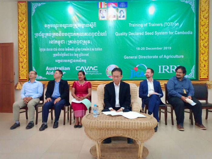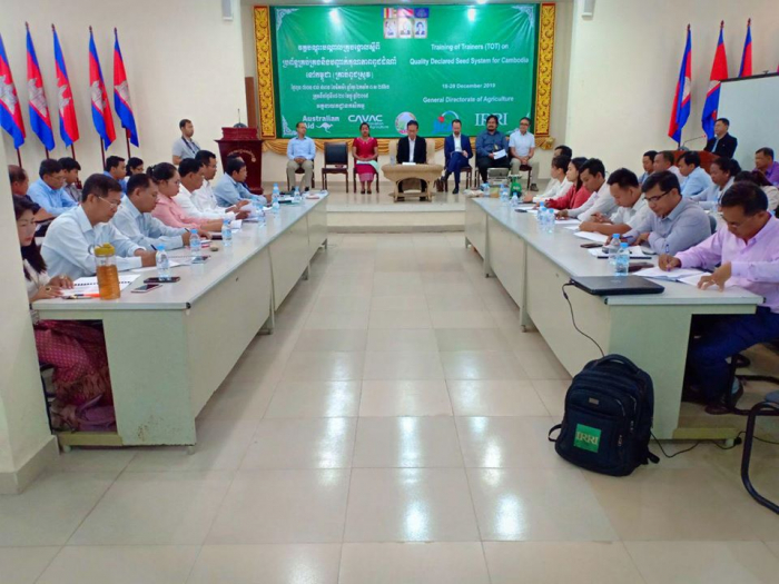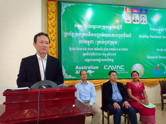 នៅអគ្គនាយកដ្ឋានកសិកម្ម នាព្រឹកថ្ងៃពុធ ៧រោច ខែមិគសិរ ឆ្នាំកុរ ឯកស័ក ពុទ្ធសករាជ២៥៦៣ ត្រូវនឹងថ្ងៃទី១៨ ខែធ្នូ ឆ្នាំ២០១៩ ឯកឧត្តមបណ្ឌិត ងិន ឆាយ ប្រតិភូរាជរដ្ឋាភិបាលកម្ពុជាទទួលបន្ទុកជាអគ្គនាយកនៃអគ្គនាយកដ្ឋានកសិកម្ម បានចូលរួមជាអធិបតីបើកវគ្គបណ្តុះបណ្តាលគ្រូបង្គោលស្តីពីប្រព័ន្ធគ្រប់គ្រងនិងបញ្ជាក់គុណភាពពូជដំណាំ (QDS) នៅកម្ពុជា ដែលមានសិក្ខាកាមចូលរួមសរុបចំនួន៥៩នាក់ អញ្ជើញមកពីគម្រោង CAVAC, Rice-SDP, IRRI, JICA និងមន្ទីរកសិកម្មខេត្តចំនួន៨គឺ ខេត្តបន្ទាយមានជ័យ បាត់ដំបង ពោធិ៍សាត់ កំពង់ឆ្នាំង ព្រៃវែង តាកែវ កំពង់ធំ និងខេត្តសៀមរាប។ ថ្លែងក្នុងឱកាសបើកវគ្គបណ្តុះបណ្តាលនេះដែរ ឯកឧត្តមប្រតិភូ បានបញ្ជាក់ថានៅក្នុងវិស័យកសិកម្ម យើងតែងមានការយល់ច្រលំក្នុងការប្រើប្រាស់ពាក្យថាប្រភេទពូជ (Variety) និងពូជដំណាំ (Seed) ដូច្នេះសូមឱ្យមានការប្រើប្រាស់ពាក្យនេះឱ្យបានត្រឹមត្រូវចៀសវាងការភ័ន្តច្រឡំ។ ឯកឧត្តម បានបញ្ជាក់បន្ថែមថា ប្រព័ន្ធ QDS ជាប្រព័ន្ធមួយថ្មីសម្រាប់កម្ពុជា ហើយសិក្ខាកាមដែលចូលរួមវគ្គបណ្តុះបណ្តាលនៅថ្ងៃនេះ នឹងក្លាយជាគ្រូនៅពេលខាងមុខ ដូច្នេះសិក្ខាកាមទាំងអស់ត្រូវខិតខំស្រូបយកចំណេះដឹងថ្មីមួយនេះ ដើម្បីយកទៅប្រើប្រាស់ឱ្យមានប្រសិទ្ធភាព ក្នុងគោលបំណងជំរុញការប្រើប្រាស់គ្រាប់ពូជសុទ្ធ មានគុណភាពល្អ៕