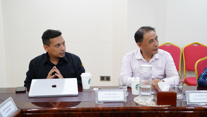 នៅថ្ងៃទី២២ ខែមេសា ឆ្នាំ២០២៥ លោកជំទាវ អ៊ឹម រចនា អនុរដ្ឋលេខាធិការក្រសួងកសិកម្ម រុក្ខាប្រមាញ់ និងនេសាទ ទទួលបន្ទុកការងារព័ត៌មាន និងទំនាក់ទំនងសាធារណៈ បានទទួលជួបពិភាក្សាការងារ ជាមួយតំណាងអង្គការស្បៀង និងកសិកម្មនៃសហប្រជាជាតិ (FAO) ដើម្បីជជែកពិភាក្សាពីការត្រៀមរៀបចំដំណើរទស្សនកិច្ចសម្រាប់អ្នកសារព័ត៌មាន ទៅកាន់ខេត្តពោធិ៍សាត់។ ជំនួបនេះធ្វើឡើង នៅទីស្តីការក្រសួងកសិកម្ម រុក្ខាប្រមាញ់ និងនេសាទ។