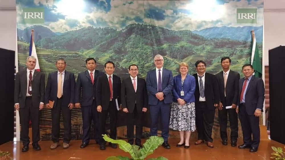 បន្ទាប់ពីកិច្ចពិភាក្សារវាងភាគីទាំងពីរត្រូវបានបញ្ចប់ ឯកឧត្តមរដ្ឋមន្ត្រី វេង សាខុន និងលោកបណ្ឌិត Matthew Morell អគ្គនាយកវិទ្យាស្ថាន IRRI បានអញ្ជើញចូលជាអធិបតីក្នុងពិធីចុះហត្ថលេខាដាក់ឲ្យប្រើប្រាស់ជាផ្លូវការនូវយុទ្ធសាស្ត្រជាតិស្តីពីពូជដំណាំរបស់កម្ពុជា។ ក្នុងពិធីដ៏មានសារៈសំខាន់នារសៀលនេះ ឯកឧត្តមរដ្ឋមន្ត្រីបានឡើងថ្លែងសុន្ទរកថា ដោយលោកបានថ្លែងអំណរគុណយ៉ាងជ្រាលជ្រៅជូនចំពោះវិទ្យាស្ថានដែលបានសហការជាមួយអគ្គនាយកដ្ឋានកសិកម្មនៃក្រសួងកសិកម្ម រុក្ខាប្រមាញ់ និងនេសាទ ក្នុងការចងក្រងយុទ្ធសាស្ត្រដ៏សំខាន់នេះឡើងសម្រាប់អភិវឌ្ឍវិស័យកសិកម្មនៅកម្ពុជា ដើម្បីលើកកម្ពស់ផលិតកម្មពូជដំណាំថ្មីៗដែលមានទិន្នផលខ្ពស់ ធន់នឹងការប្រែប្រួលអាកាសធាតុ ឆ្លើយតបតាមតម្រូវចិត្តនិងតម្រូវការទៅផ្សារ ប្រព័ន្ធចែកចាយនិងទីផ្សារពូជដំណាំប្រកបដោយប្រសិទ្ធភាព និងនិរន្តភាពសម្រាប់គ្រប់ភាគីពាក់ព័ន្ធ។ ឯកឧត្តមរដ្ឋមន្ត្រីក៏មានជំនឿចិត្តថា ព្រឹត្តិការណ៍នាថ្ងៃនេះបានពង្រឹង និងពង្រីកចំណងមិត្តភាពនិងកិច្ចសហប្រតិបត្តិការរវាងក្រសួងកសិកម្ម រុក្ខាប្រមាញ់ និងនេសាទ និងវិទ្យាស្ថាន IRRI ថែមមួយកម្រិតទៀត ហើយក្រសួងនឹងព្រឹងអស់លទ្ធភាពដើម្បីឲ្យយុទ្ធសាស្ត្រនេះទទួលបានលទ្ធផលដូចការរំពឹងទុក។