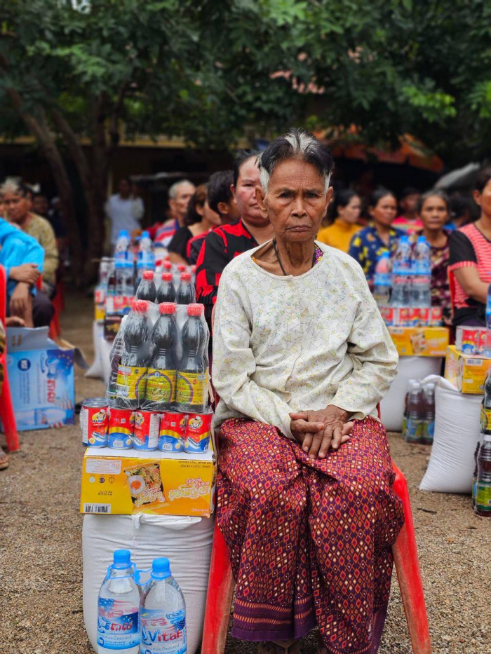 អំណោយទាំងនោះរួមមាន៖ អង្ករ មីជាតិ ទឹកស៊ីអ៊ីវ ទឹកត្រី ត្រីខ និងទឹកបរិសុទ្ធ​។ ចំណែកសម្ភារៈប្រើប្រាស់របស់ក្រសួងអភិវឌ្ឍន៍ជនបទ​ដែលយកចែកជូនរួមមាន៖ សាប៊ូបោកខោអាវ  សាប៊ូលាងដៃ ធុងទឹកចំរោះទឹកស្អាត កៅស៊ូតង់ខៀវ៕