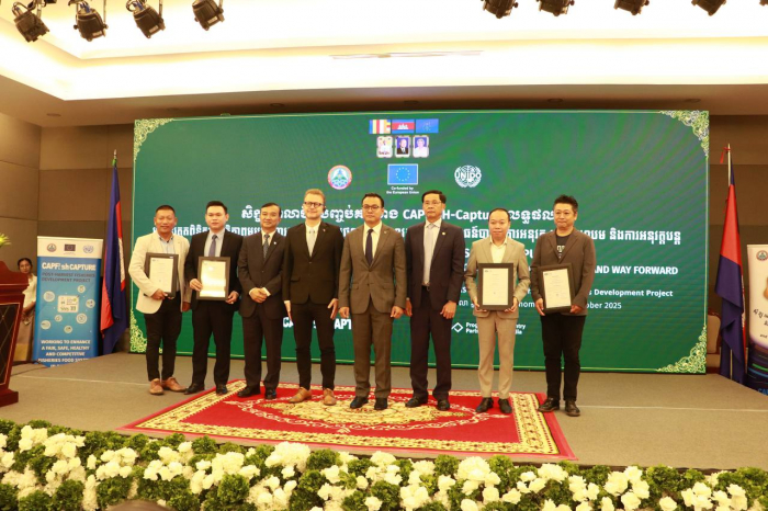 នៅថ្ងៃទី៦ ខែតុលា ឆ្នាំ២០២៥ ឯកឧត្តម ប្រាក់ ដាវីដ រដ្ឋលេខាធិការ ក្រសួងកសិកម្ម រុក្ខាប្រមាញ់ និងនេសាទ ជាតំណាងដ៏ខ្ពង់ខ្ពស់ឯកឧត្តមរដ្ឋមន្រ្តី ឌិត ទីណា បានអញ្ជើញជាអធិបតីភាព ក្នុងសិក្ខាសាលាបច្ចេកទេសបញ្ចប់គម្រោង CAPFish-Capture (លទ្ធផលទី១) ប្រព័ន្ធត្រួតពិនិត្យសុវត្ថិភាពម្ហូបអាហារក្នុងវិស័យជលផល។