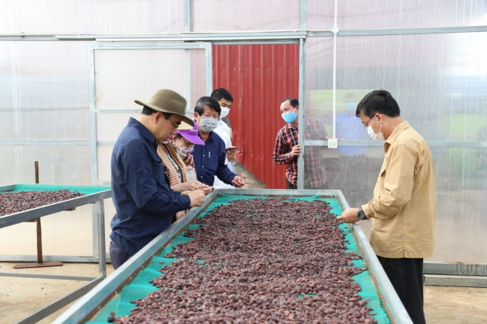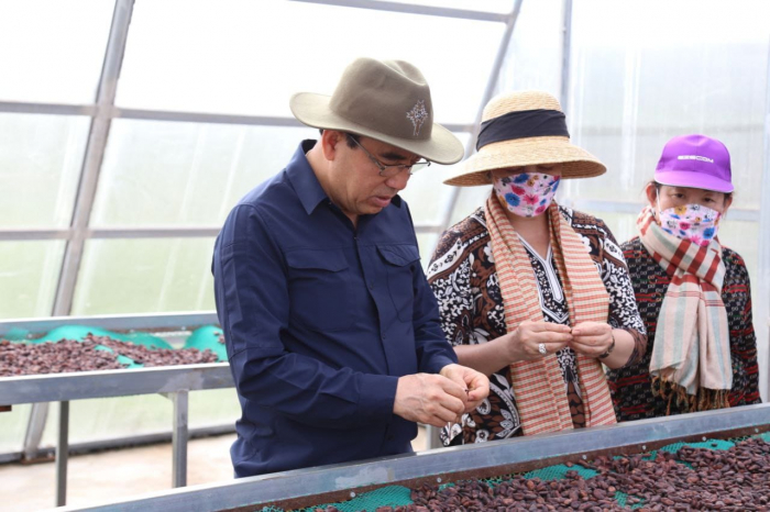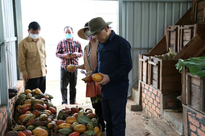 បន្ទាប់ពីចុះពិនិត្យមើលចំការបន្លែរួច ឯកឧត្តមរដ្ឋមន្ត្រីបានបន្តដំណើរមកពិនិត្យចម្ការកាកាវ របស់ក្រុមហ៊ុន កាំកាវ ស្ថិតនៅភូមិពូក្រូច ឃុំស្រែអំពូន ស្រុកពេជ្រាដា។ លោក ប៊ុន ថេន តាំ អ្នកគ្រប់គ្រងចម្ការបានជម្រាបជូនឯកឧត្តមរដ្ឋមន្រ្តីថា ក្រុមហ៊ុនបានដាំកាកាវសាកល្បងលើផ្ទៃដីជាង ២ហត ទទួលបានផលជាង ៣តោន/ឆ្នាំ ដោយធ្វើការនាំចេញទៅប្រទេសសឺង្ហបុរី និងប្រទេសជប៉ុន។ ប្រសិន បើដាំបានល្អ ទទួលបានផលខ្ពស់ក្នុង ១ហត ដំណាំកាកាវអាចទទួលបានចំណូល ៦០០០-៧០០០ដុល្លារ/ឆ្នាំ។