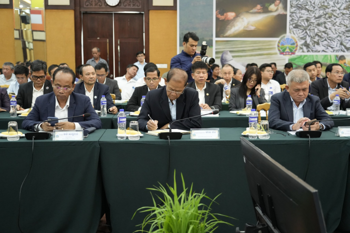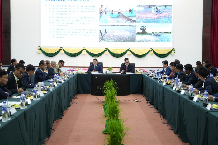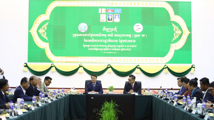 នារសៀលថ្ងៃទី២៤ ខែមិថុនា ឆ្នាំ២០២៥ ឯកឧត្តម ឌិត ទីណា រដ្ឋមន្ត្រីក្រសួងកសិកម្ម រុក្ខាប្រមាញ់ និងនេសាទ និងលោកឧកញ៉ា ម៉ុង រិទ្ធថា សហប្រធានក្រុមការងារផ្នែកកសិកម្ម កសិ-ឧស្សាហកម្មផ្នែកឯកជន អញ្ជើញជាគណៈអធិបតីដឹកនាំកិច្ចប្រជុំក្រុមការងារផ្នែកកសិកម្ម កសិ-ឧស្សាហកម្ម (ក្រុម "ក") នៃវេទិការាជរដ្ឋាភិបាល-ផ្នែកឯកជន នៅទីស្តីការក្រសួងកសិកម្ម រុក្ខាប្រមាញ់ និងនេសាទ៕