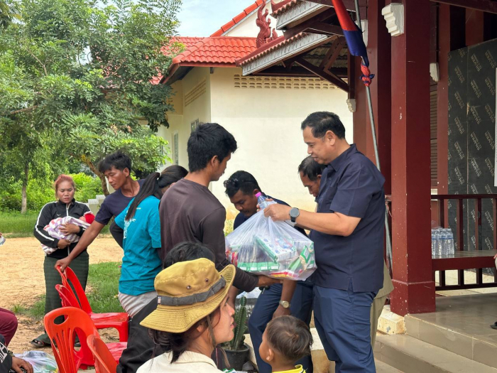 ជាមួយគ្នានេះ លោកបណ្ឌិត បាននាំយកស្បៀងអាហារ និងសម្ភារៈប្រើប្រាស់សំខាន់ៗមួយចំនួន ចែកជូនប្រជាពលរដ្ឋដែលបានភៀសសឹក ចំនួន៦១គ្រួសារ ដែលមកពីស្រុកបន្ទាយអំពិល ខេត្តឧត្តរមានជ័យ និងឃុំគោករមៀត ស្រុកថ្មពួក ខេត្តបន្ទាយមានជ័យ។