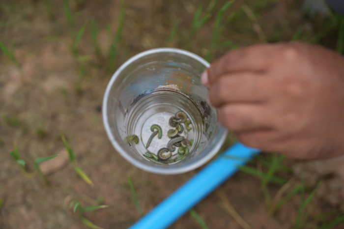 នៅថ្ងៃទី២៣ ខែមិថុនា ឆ្នាំ២០២៤ ឯកឧត្តម ងិន ឆាយ ប្រតិភូរាជរដ្ឋាភិបាលកម្ពុជាទទួលបន្ទុកជាអគ្គនាយកនៃអគ្គនាយកដ្ឋានកសិកម្ម បានដឹកនាំមន្រ្តីជំនាញបន្តចុះពិនិត្យស្ថានភាពនៃការផ្ទុះរាលដាលដង្កូវហ្វូង និងនាំយកដ្រូនបង្ហោះបាញ់ថ្នាំកសិកម្មកម្ចាត់ដង្កូវនៅស្រុកភ្នំស្រួច ខេត្តកំពង់ស្ពឺ ដោយមានការចូលរួមពីអាជ្ញាធរមូលដ្ឋាន និងអនុប្រធានមន្ទីរកសិកម្មខេត្តកំពង់ស្ពឺ។