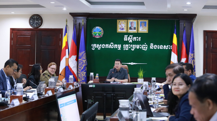 នៅរសៀលថ្ងៃទី០២ ខែកក្កដា ឆ្នាំ២០២៤ ឯកឧត្តម ឌិត ទីណា រដ្ឋមន្ត្រីក្រសួងកសិកម្ម រុក្ខាប្រមាញ់ និងនេសាទ បានចូលរួមកិច្ចប្រជុំពិនិត្យ និងពិភាក្សាលេីការពិនិត្យលេីខ្លឹមសារនៃក្របខ័ណ្ឌកម្មវិធី FAO New Country Programming Framework (CPF) 2024-2028 នៅទីស្តីការក្រសួងកសិកម្ម រុក្ខាប្រមាញ់ និងនេសាទ។